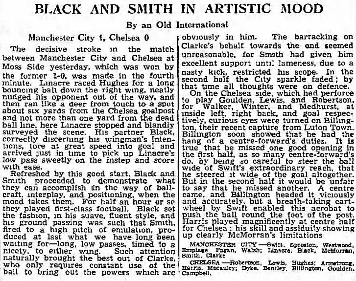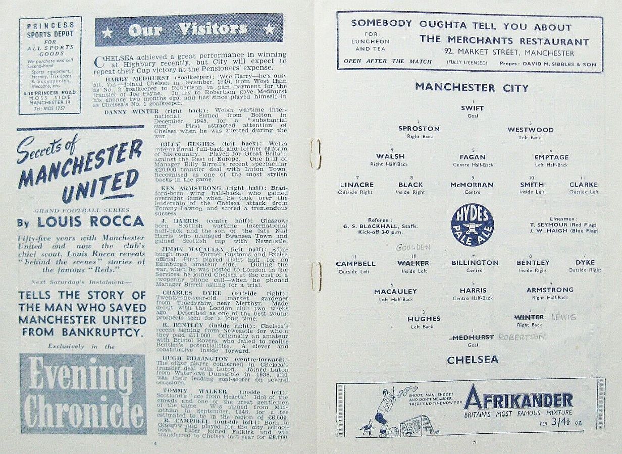 Frank Swift, Bert Sproston, Eric Westwood, Albert Emptage, Joe Fagan, Billy Walsh, Billy Linacre, Jimmy Munro, Andy Black, George Smith, Roy Clarke |