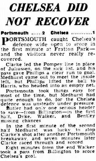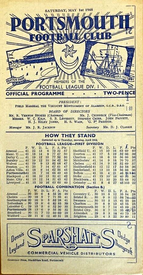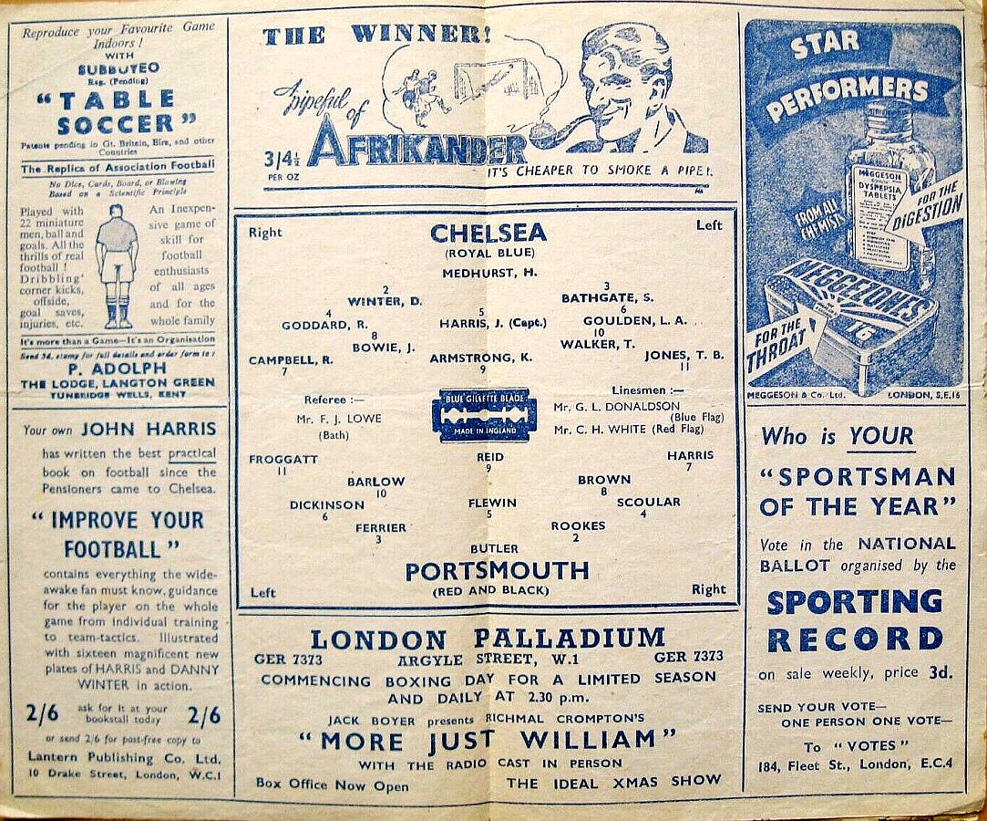 Ernie Butler, Phil Rookes, Harry Ferrier, Jimmy Scoular, Reg Flewin, Jimmy Dickinson, Peter Harris, Duggie Reid, Ike Clarke, Len Phillips, Cliff Parker |
