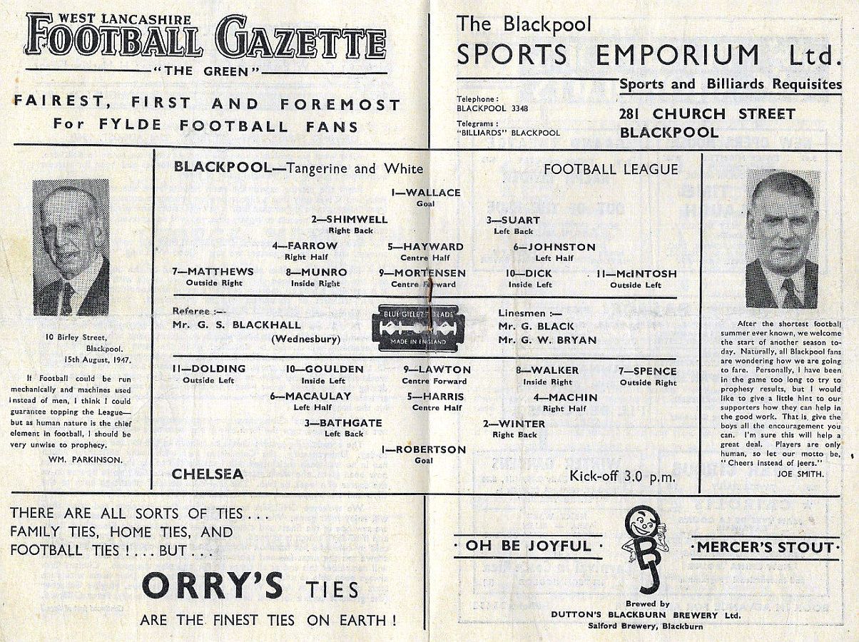 Jock Wallace, Eddie Shimwell, Ron Suart, George Farrow, Eric Hayward, Harry Johnston, Stanley Matthews, Alex Munro, Stan Mortensen, George Dick, Jimmy McIntosh |
