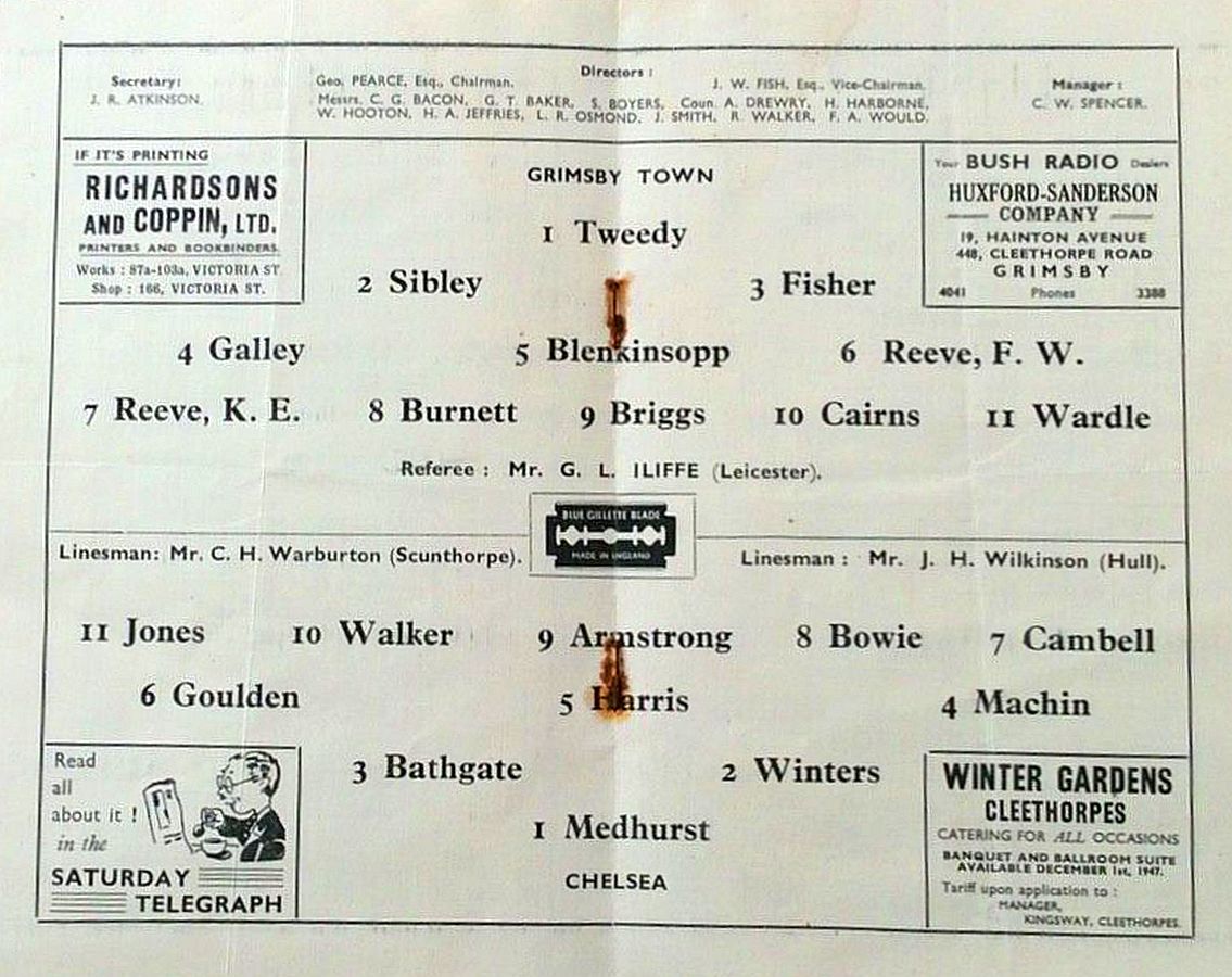 Johnny Mapson, Jack Stelling, Arthur Hudgell, Tommy McLain, Fred Hall, Arthur Wright, Harry Hetherington, Jackie Robinson, Cliff Whitelum, Willie Watson, Tommy Reynolds |