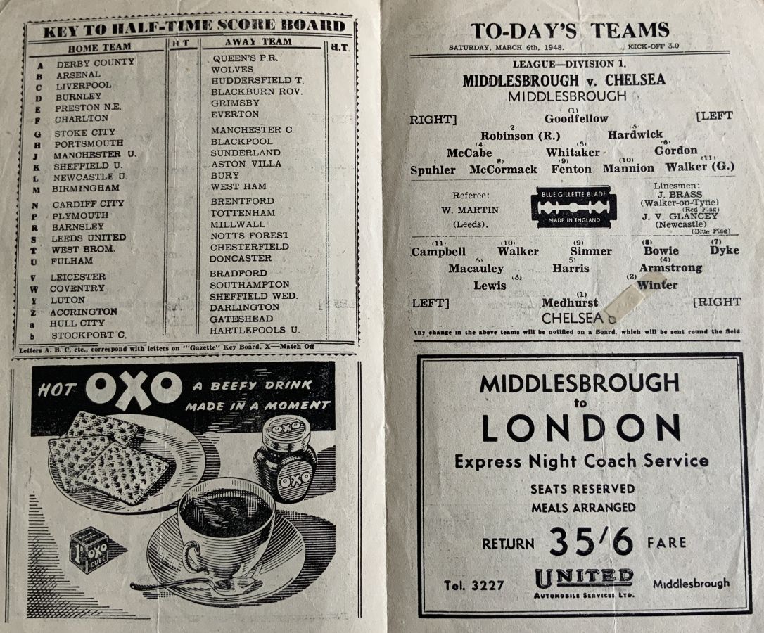 Derwick Goodfellow, Dicky Robinson, George Hardwick, Jim McCabe, Billy Whitaker, Jimmy Gordon, Johnny Spuhler, Cec McCormack, Micky Fenton, Wilf Mannion, Geoff Walker |