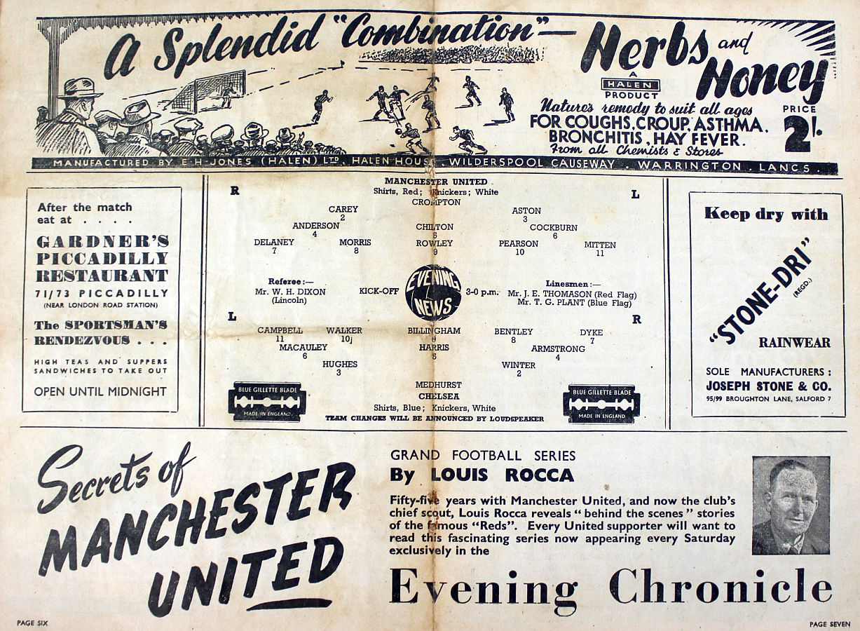 Jack Crompton, Johnny Carey, John Aston, Johnny Anderson, Allenby Chilton, Henry Cockburn, Jimmy Delaney, Johnny Morris, Jack Rowley, Stan Pearson, Charlie Mitten |