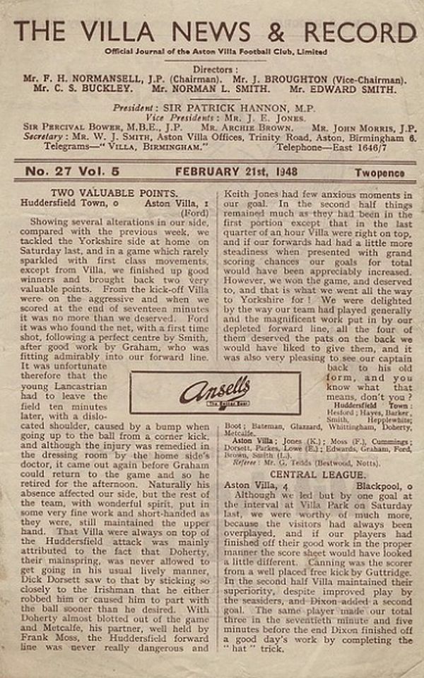 Keith Jones, Frank Moss, George Cummings, Dickie Dorsett, Harry Parkes, Eddie Lowe, George Edwards, Johnny Dixon, Trevor Ford, Robert Brown, Leslie Smith |