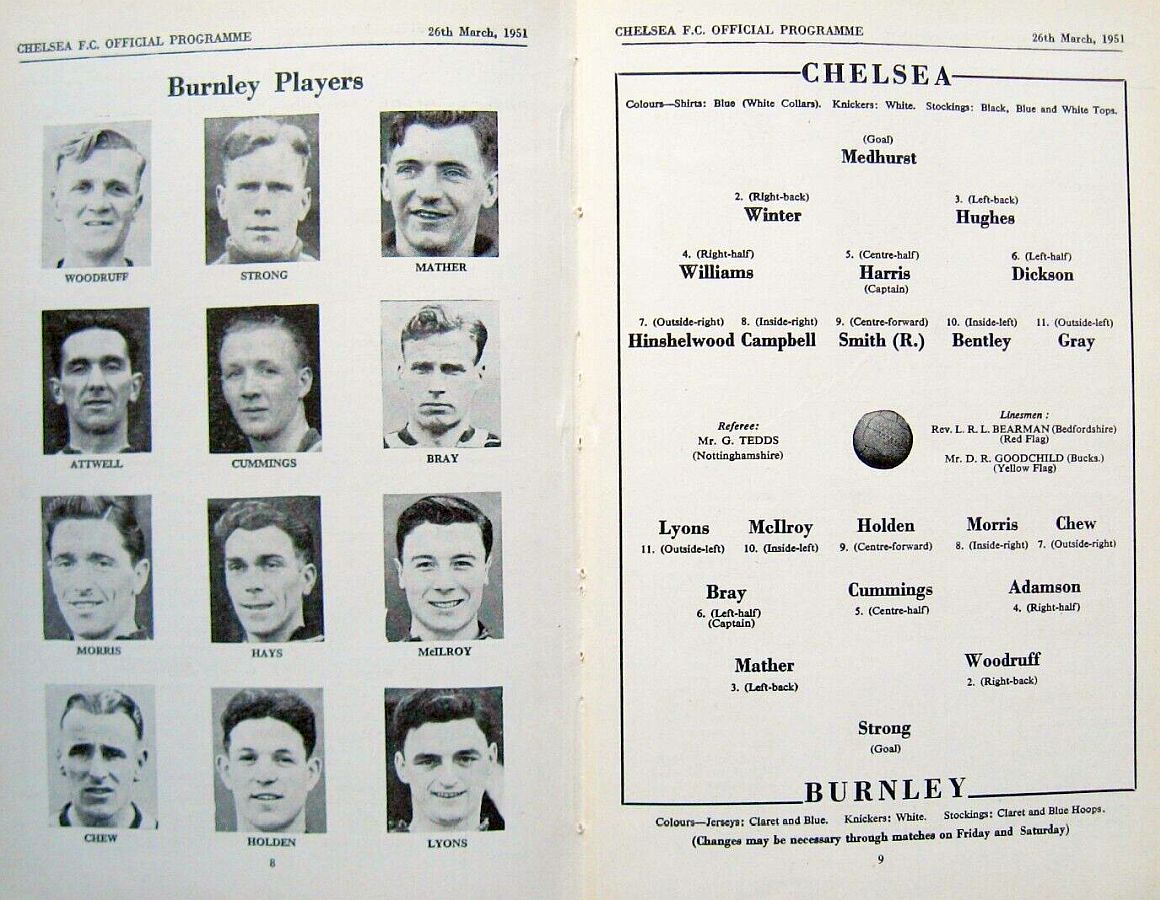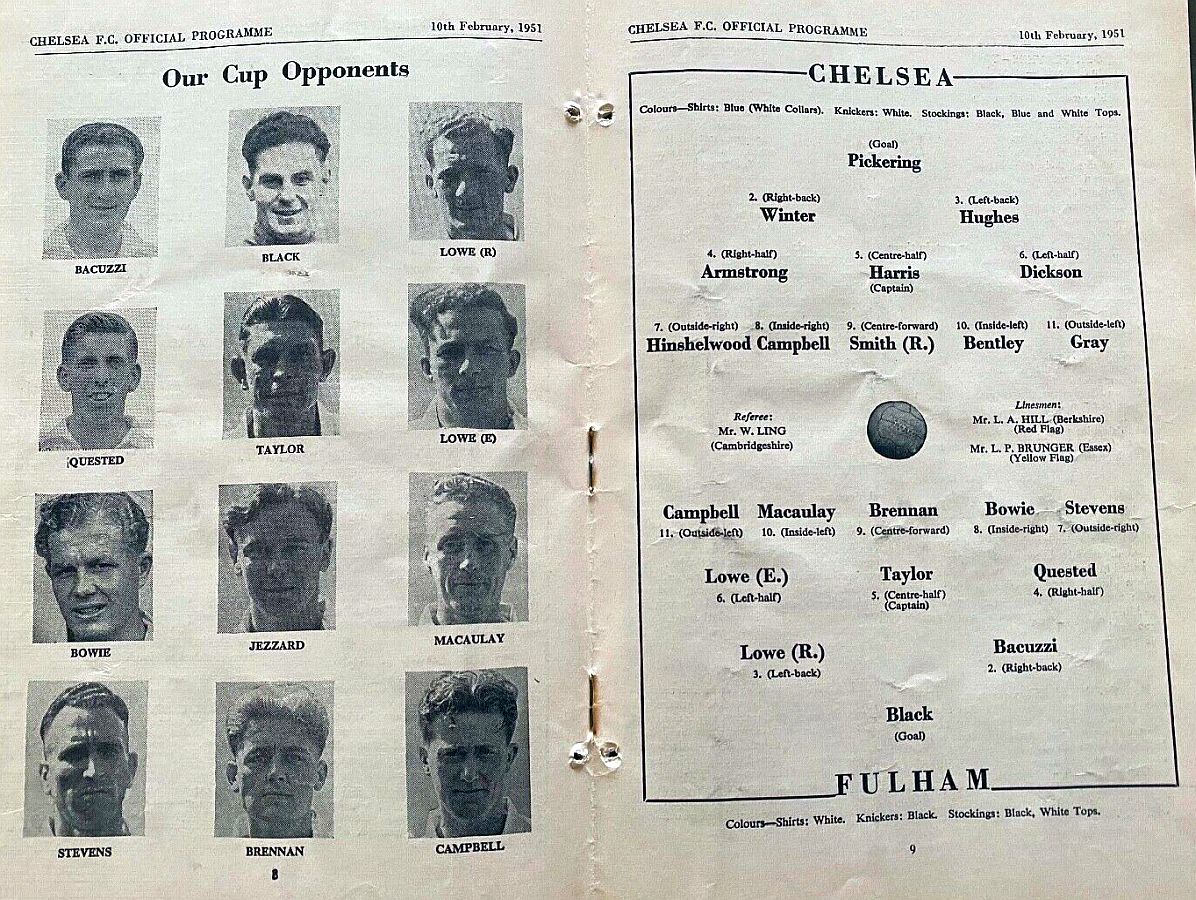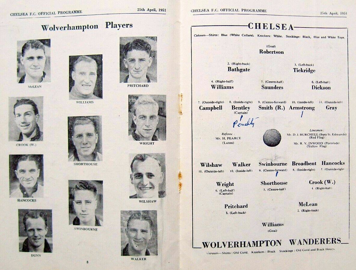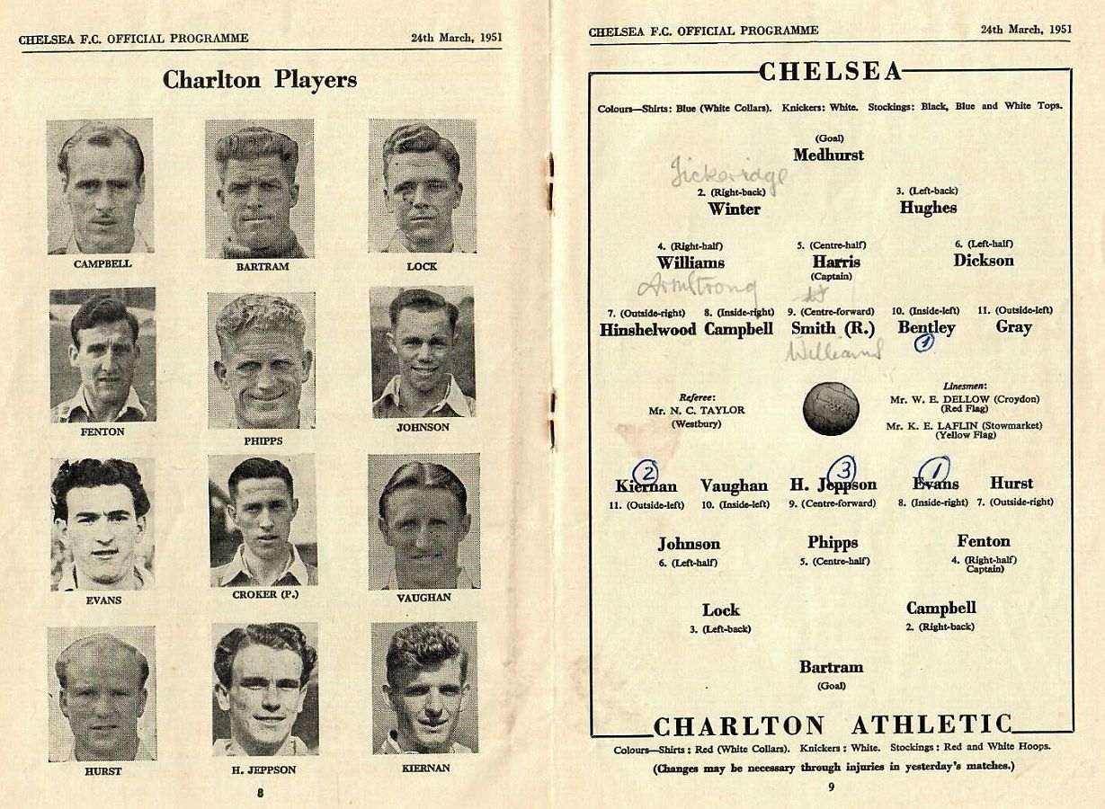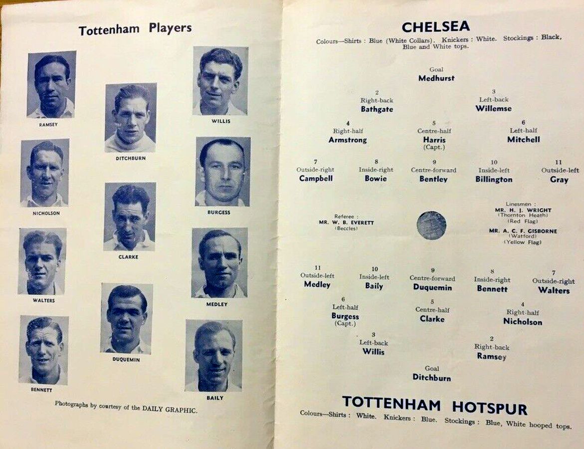 1 Harry Medhurst, 2 Sid Bathgate, 3 Sid Tickridge, 4 John Harris, 5 Jack Saunders, 6 Reg Williams, 7 Bobby Campbell, 8 Roy Bentley, 9 Bobby Smith, 10 Ken Armstrong, 11 Billy Gray |