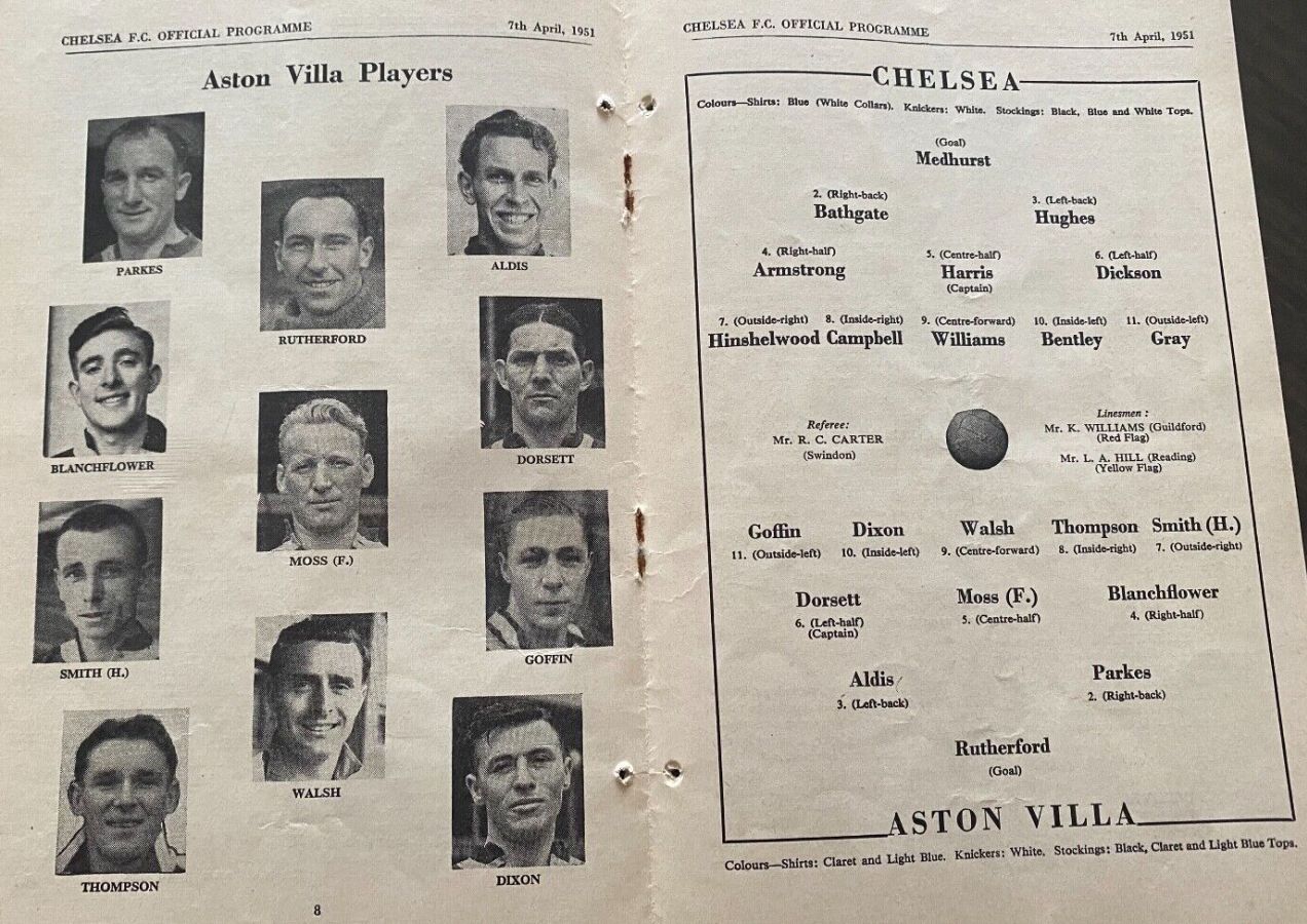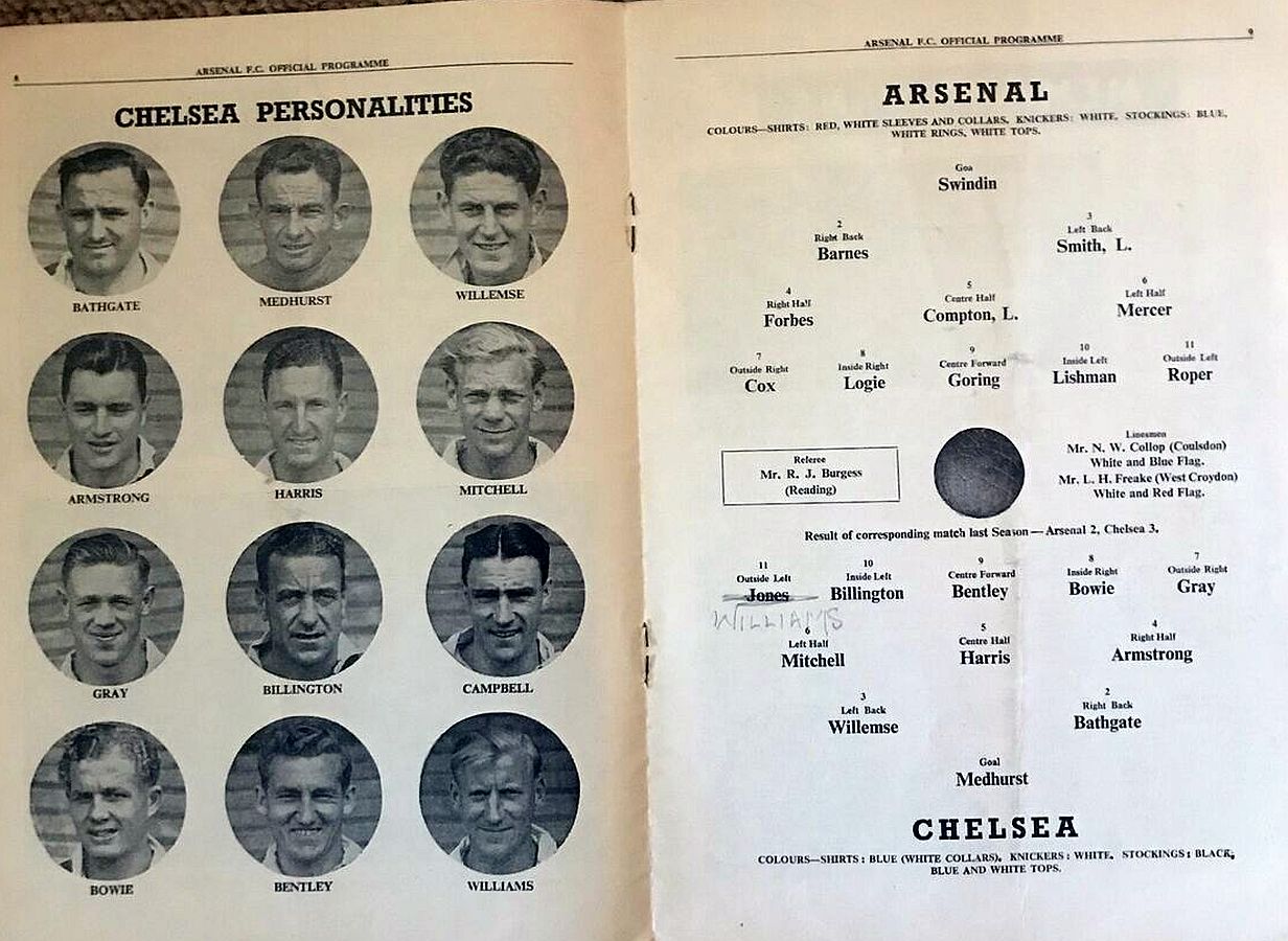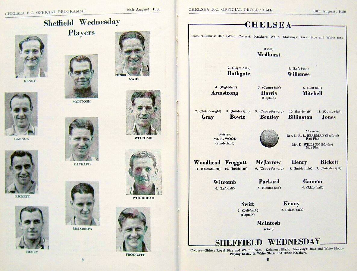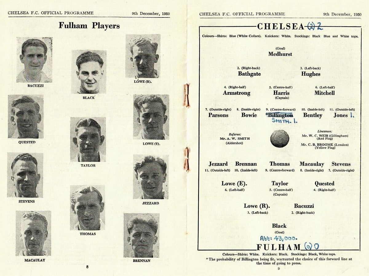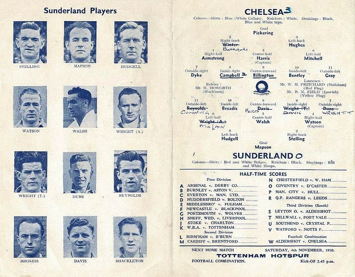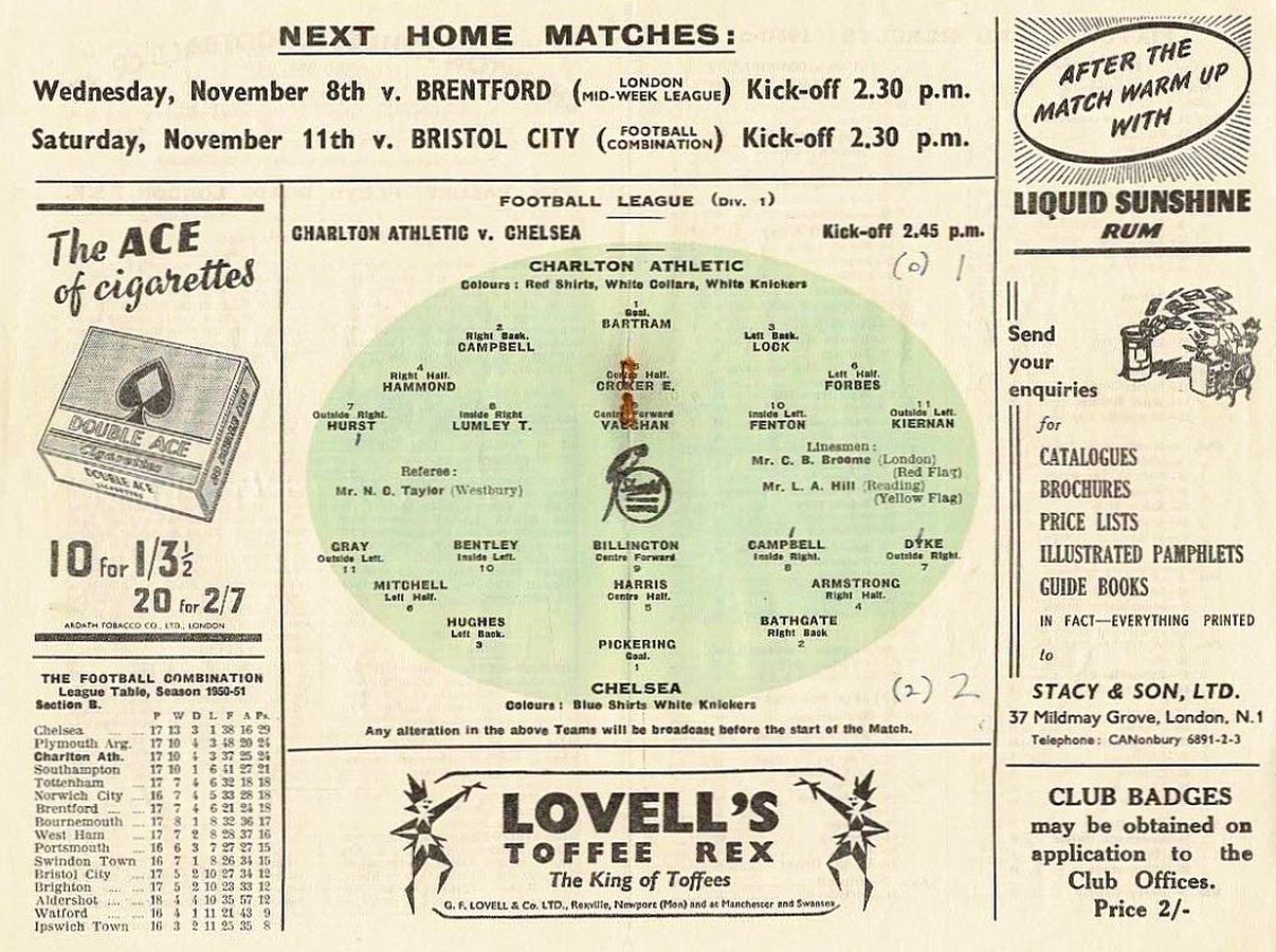 1 Harry Medhurst, 2 Sid Bathgate, 3 Sid Tickridge, 4 John Harris, 5 Jack Saunders, 6 Reg Williams, 7 Bobby Campbell, 8 Roy Bentley, 9 Bobby Smith, 10 Ken Armstrong, 11 Billy Gray |