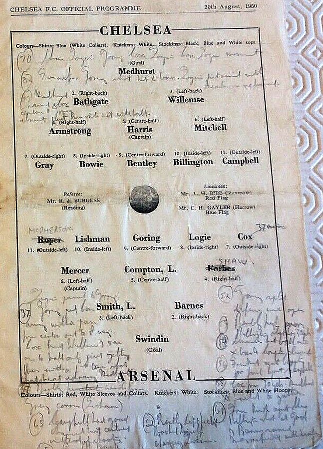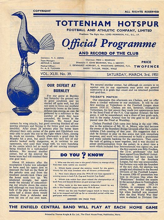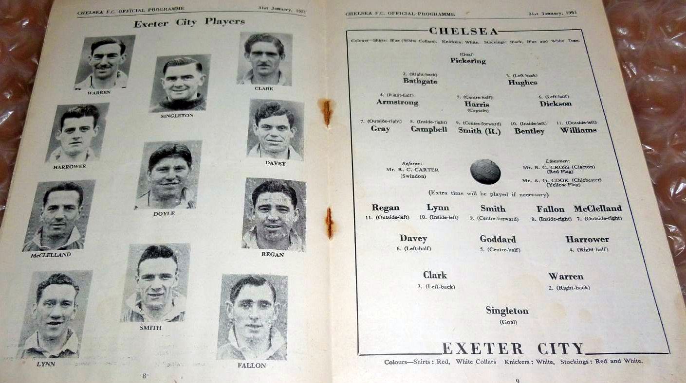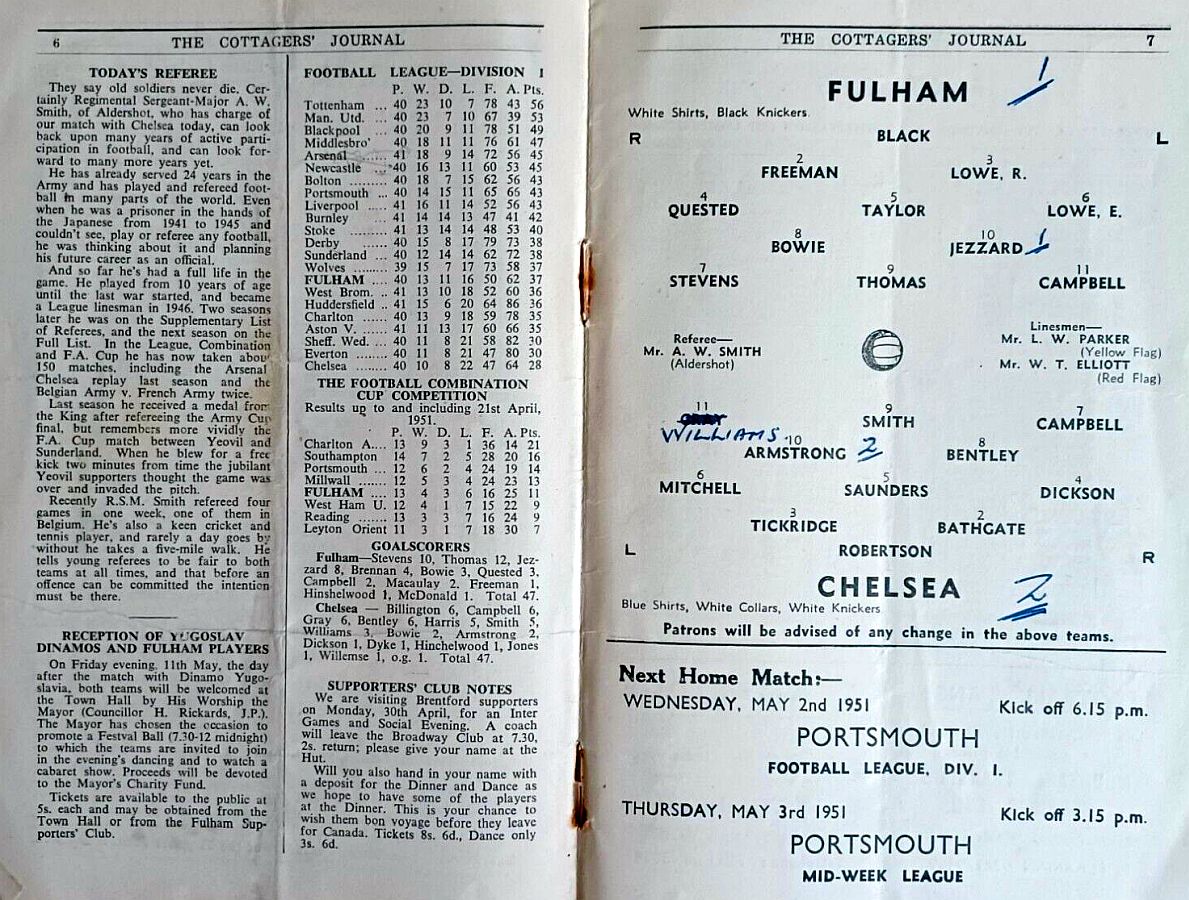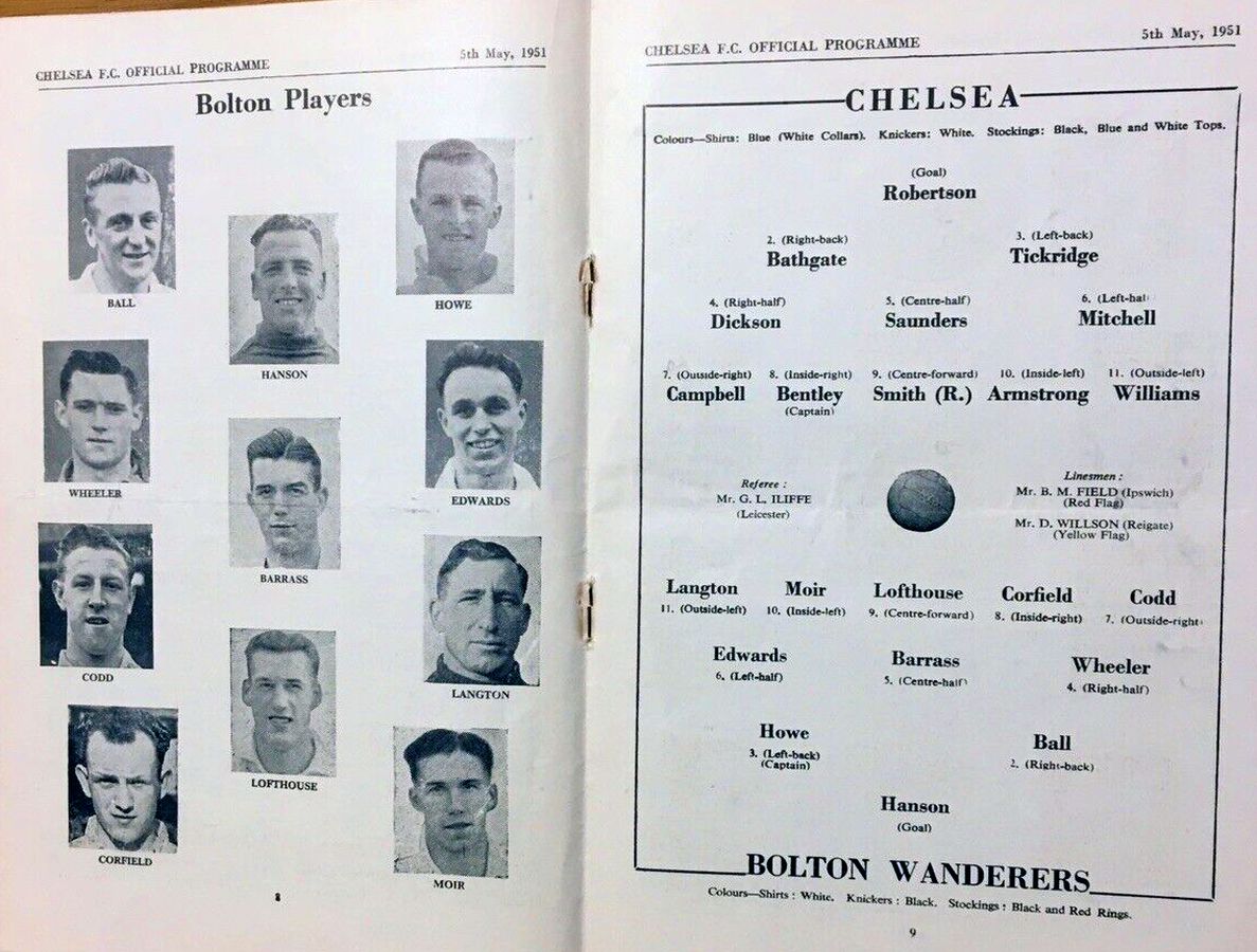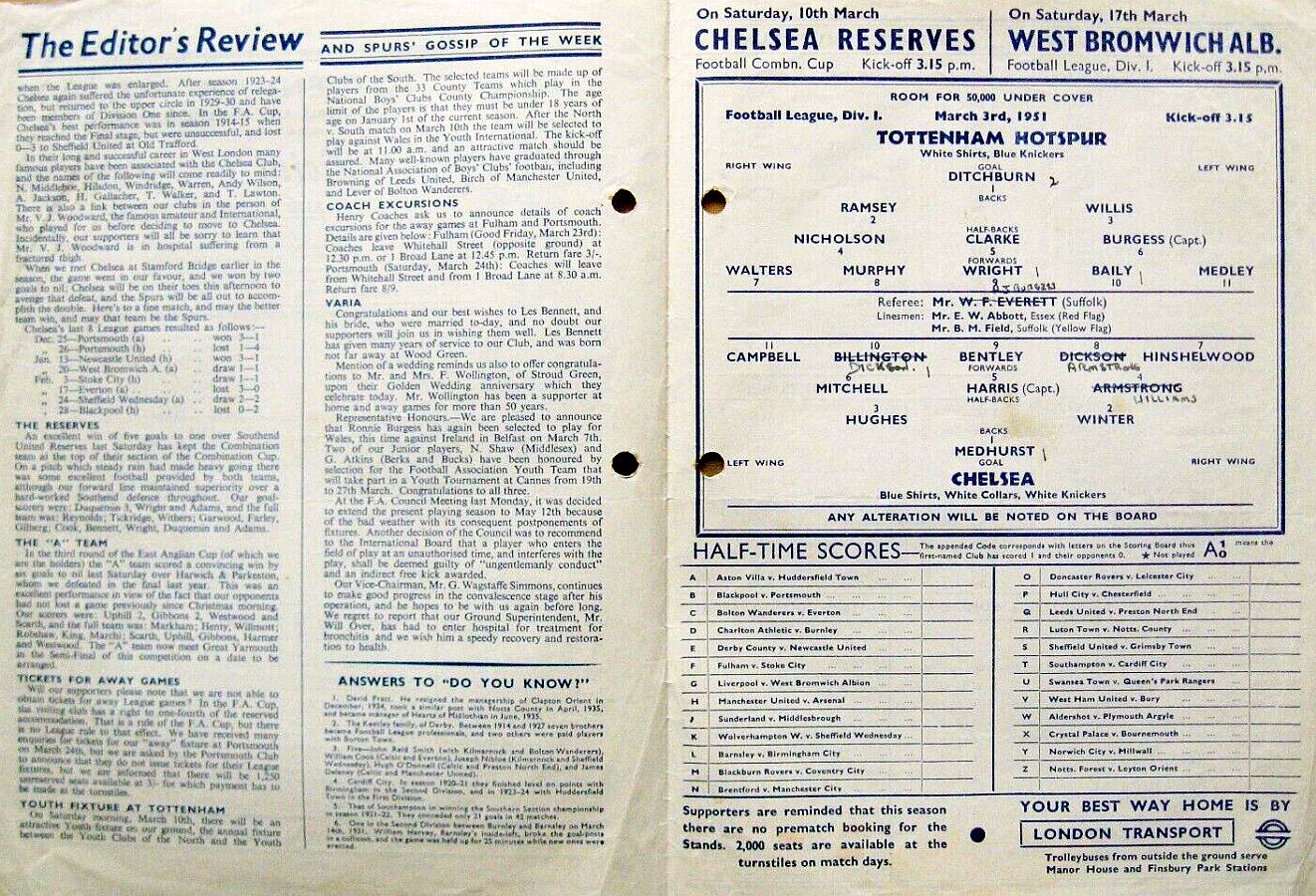 1 Harry Medhurst, 2 Sid Bathgate, 3 Sid Tickridge, 4 John Harris, 5 Jack Saunders, 6 Reg Williams, 7 Bobby Campbell, 8 Roy Bentley, 9 Bobby Smith, 10 Ken Armstrong, 11 Billy Gray |