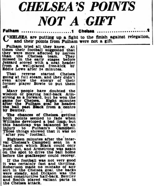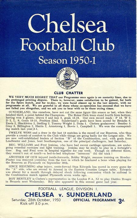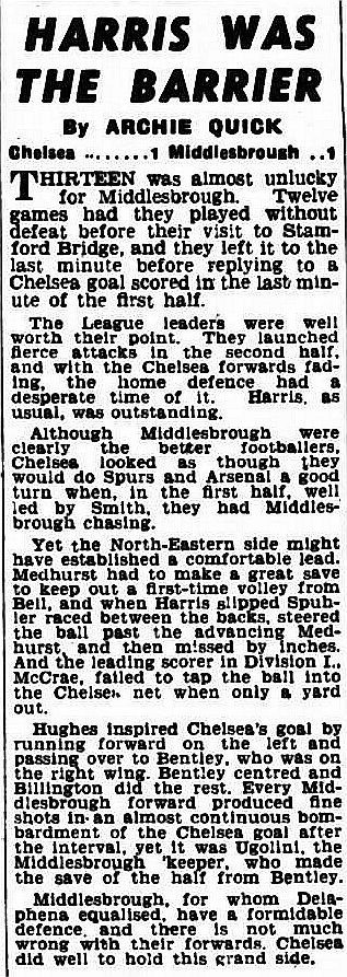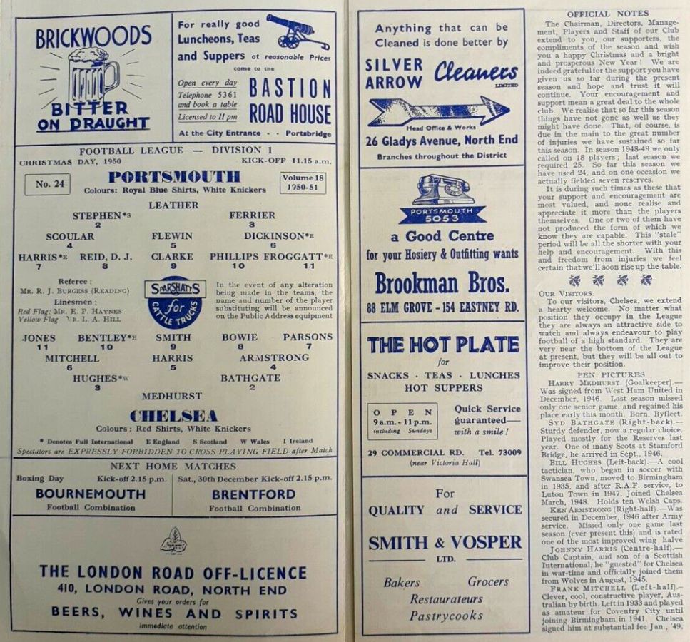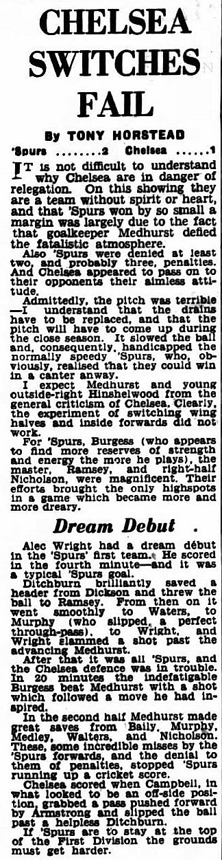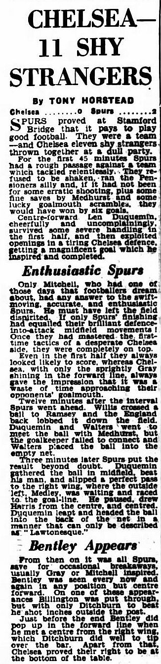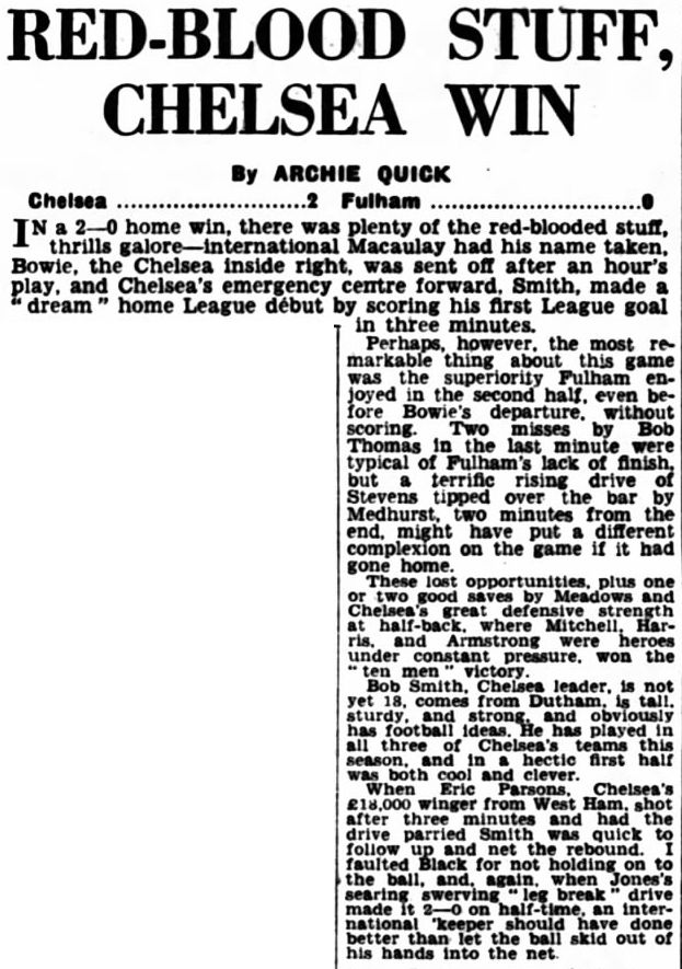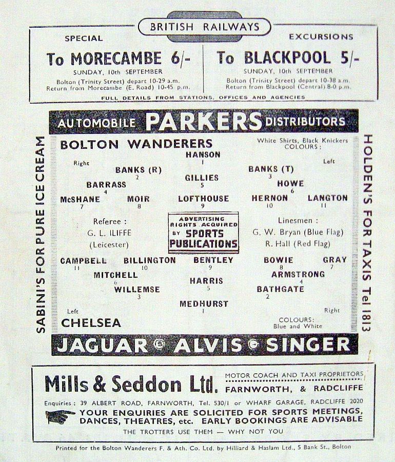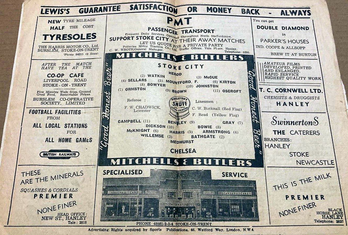1 Harry Medhurst, 2 Sid Bathgate, 3 Sid Tickridge, 4 John Harris, 5 Jack Saunders, 6 Reg Williams, 7 Bobby Campbell, 8 Roy Bentley, 9 Bobby Smith, 10 Ken Armstrong, 11 Billy Gray |