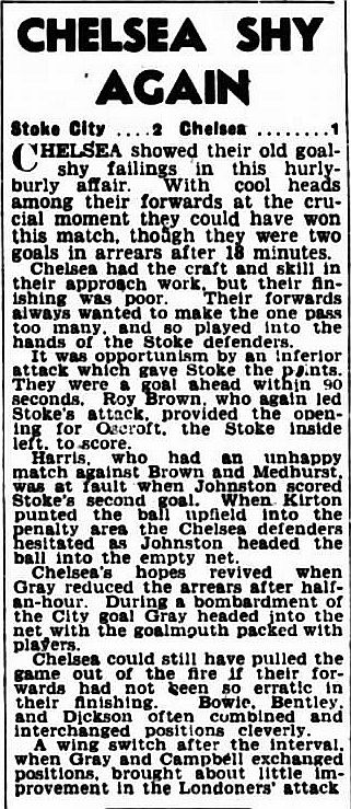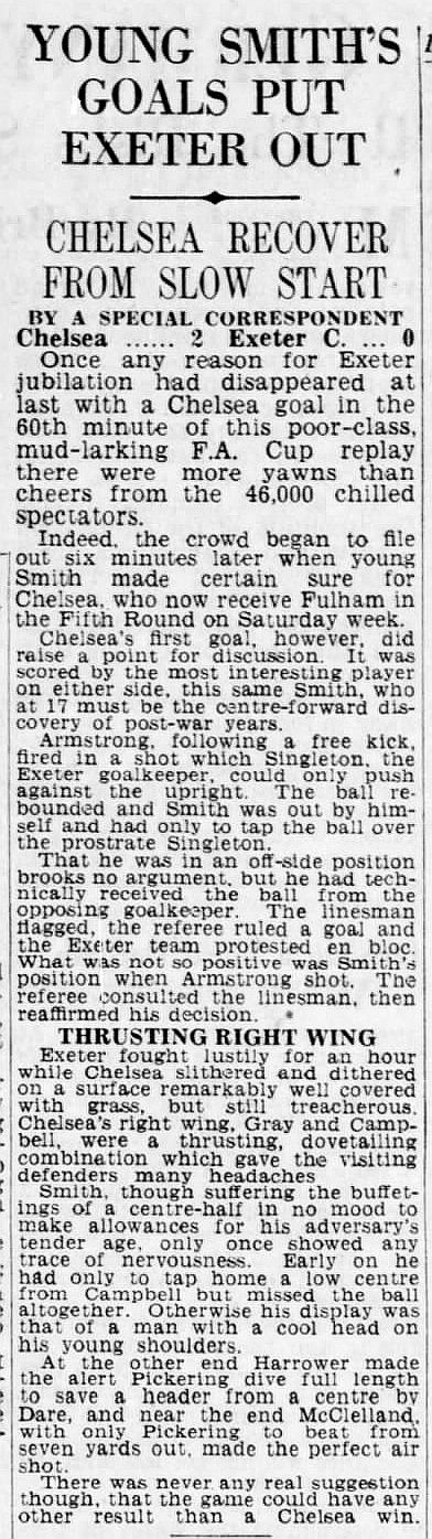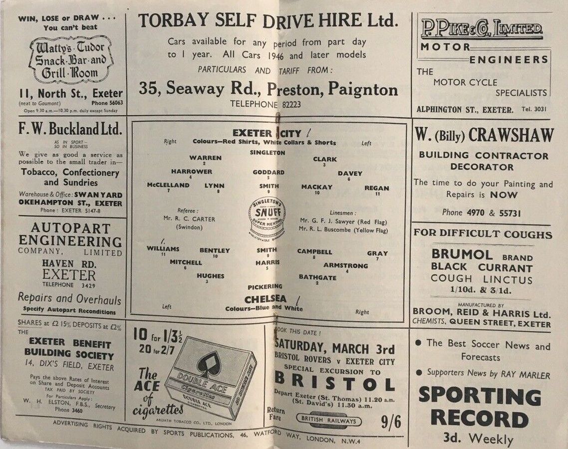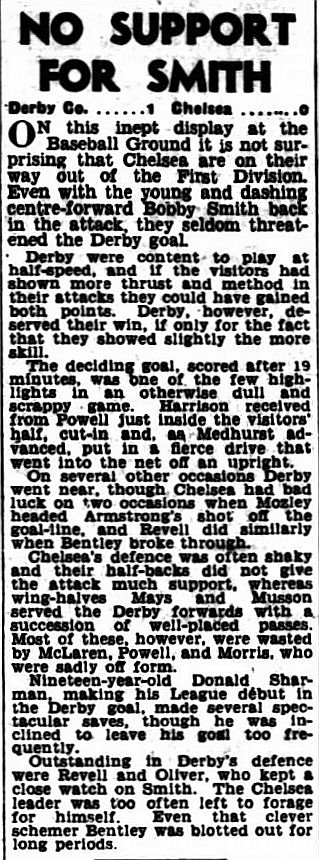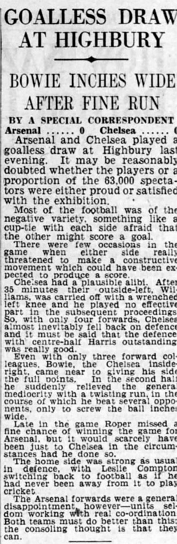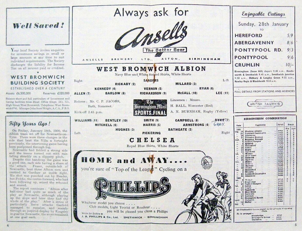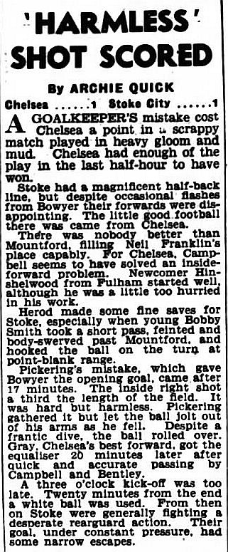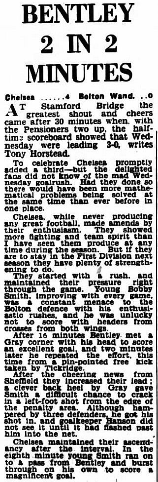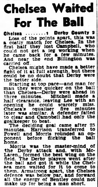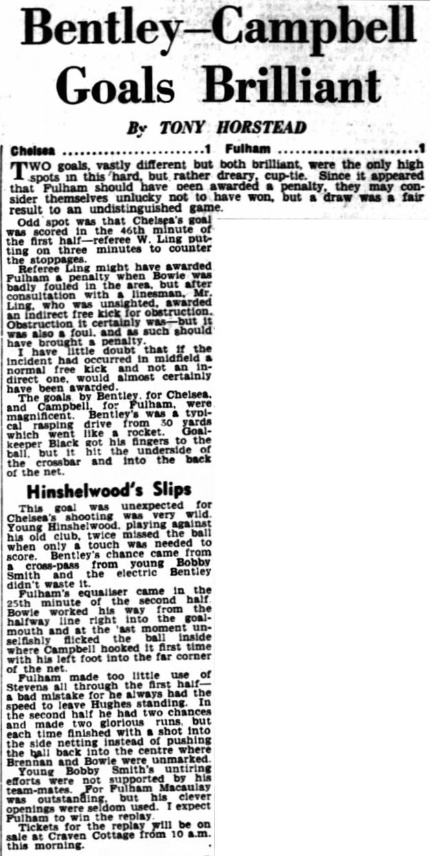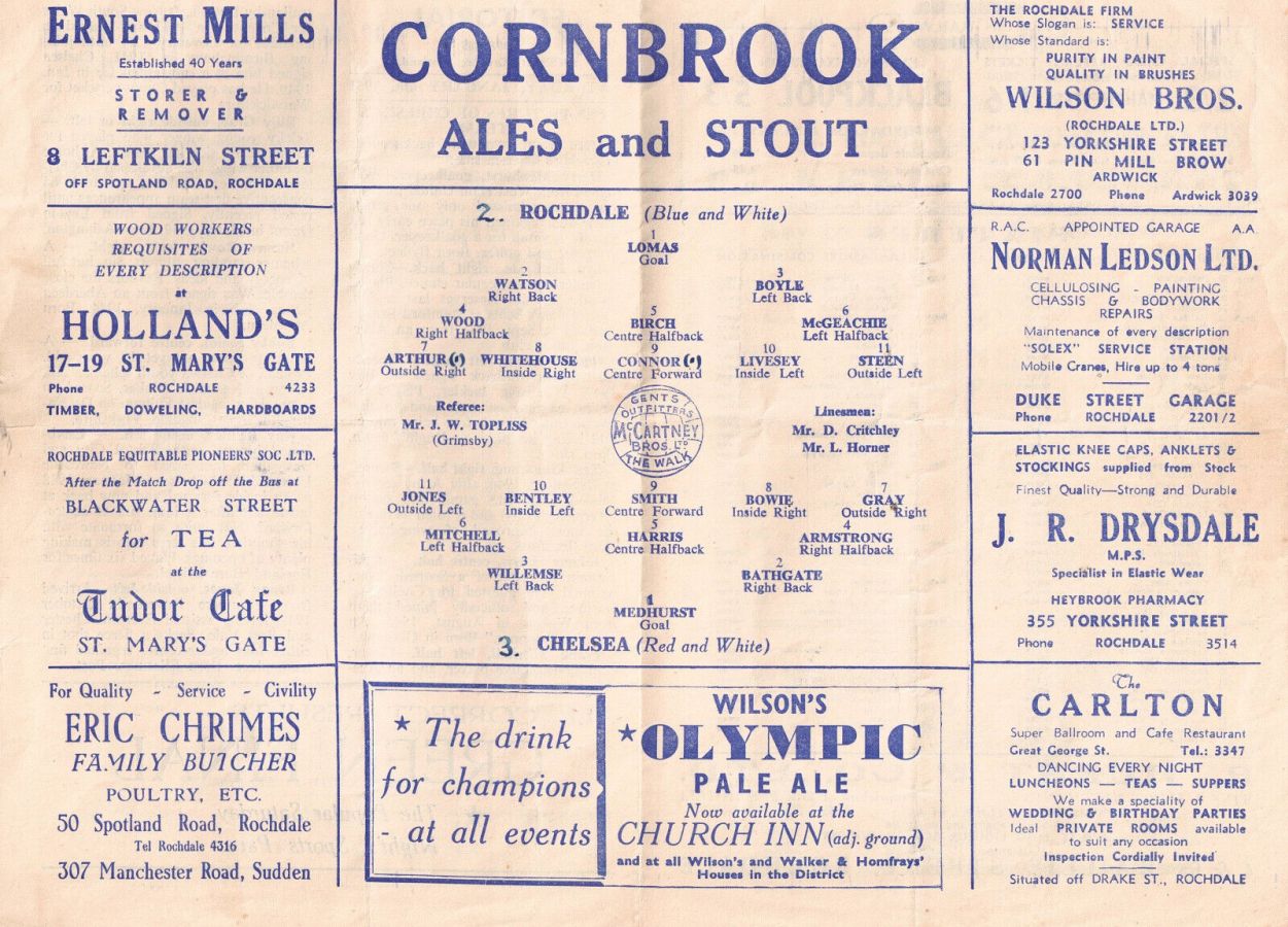 1 Harry Medhurst, 2 Sid Bathgate, 3 Sid Tickridge, 4 John Harris, 5 Jack Saunders, 6 Reg Williams, 7 Bobby Campbell, 8 Roy Bentley, 9 Bobby Smith, 10 Ken Armstrong, 11 Billy Gray |