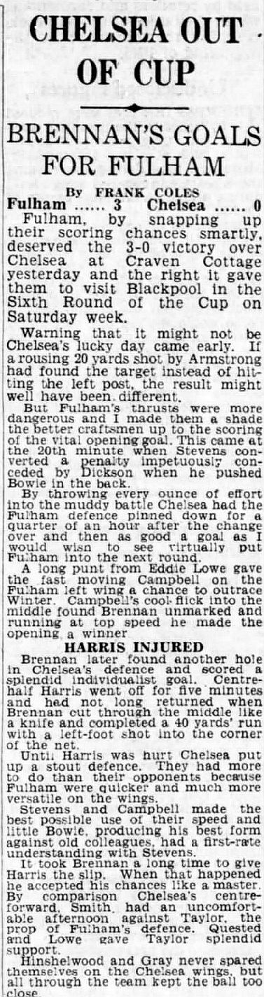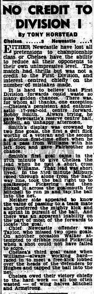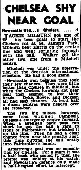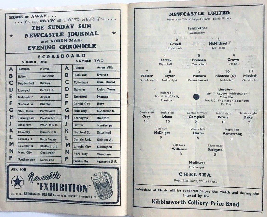 Jack Fairbrother, Bobby Cowell, Alf McMichael, Joe Harvey, Frank Brennan, Charlie Crowe, Tommy Walker, Ernie Taylor, Jackie Milburn, George Robledo, Bobby Mitchell |