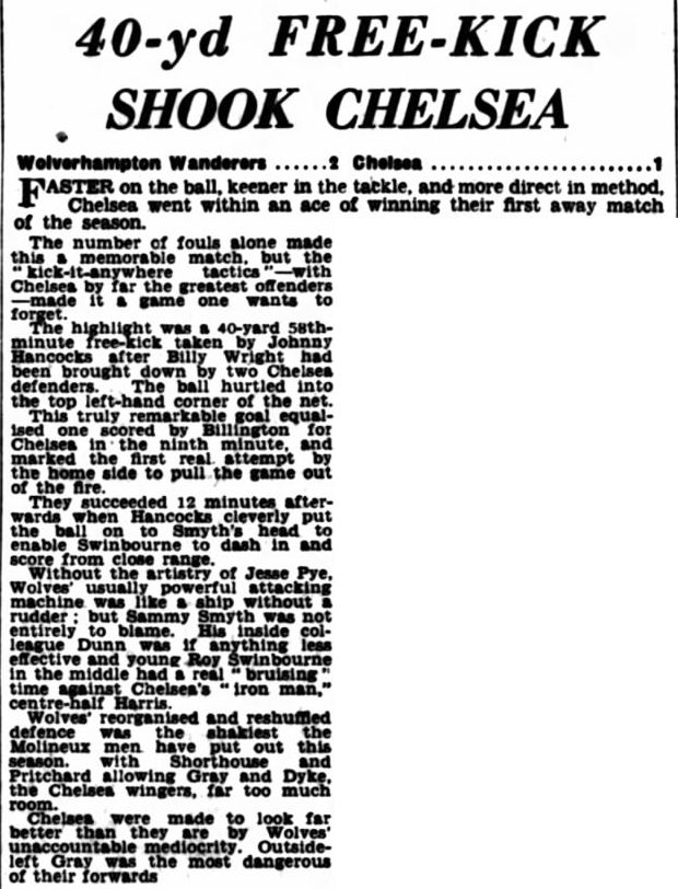 Bert Williams, Jack Short, Roy Pritchard, Billy Crook, Bill Shorthouse, Billy Wright, Les Smith, Peter Broadbent, Roy Swinbourne, Johnny Walker, Jimmy Mullen |