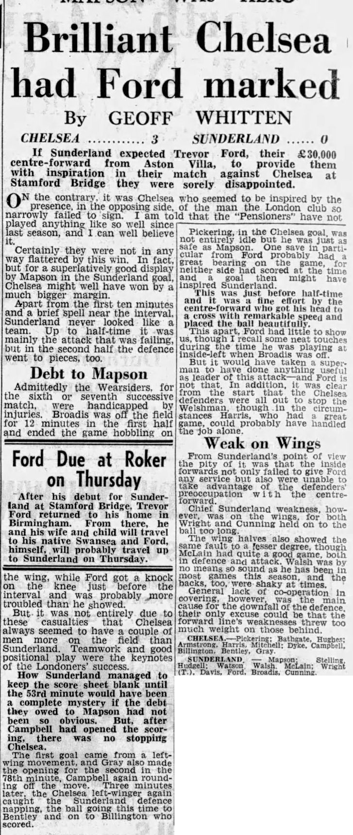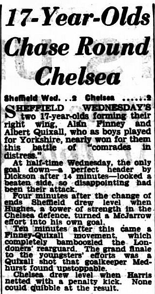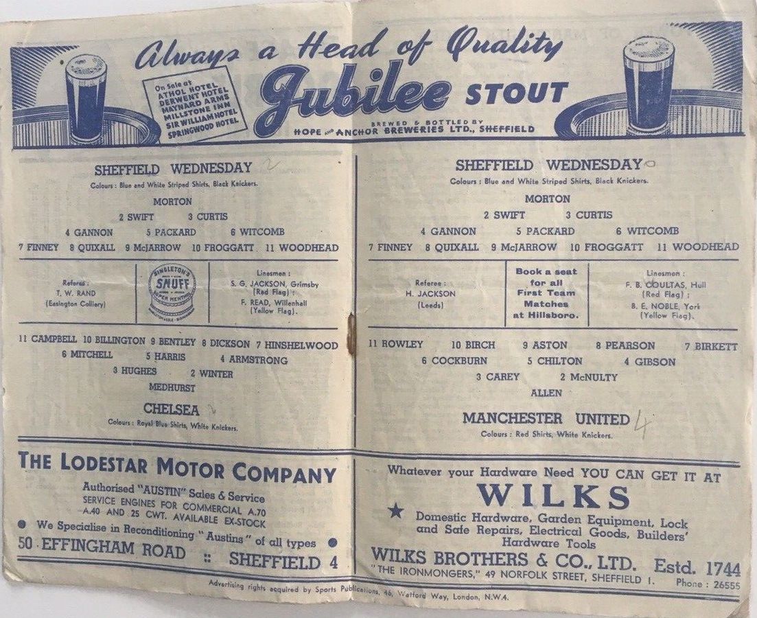 Johnny Mapson, Jack Stelling, Arthur Hudgell, Tommy McLain, Fred Hall, Billy Walsh, Billy Bingham, Tommy Wright, Trevor Ford, Len Shackleton, Tommy Reynolds |