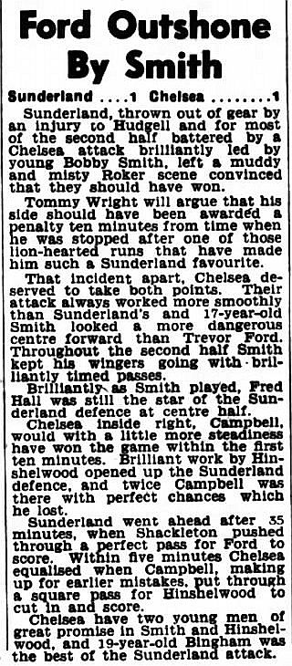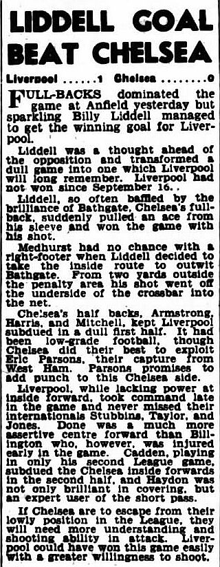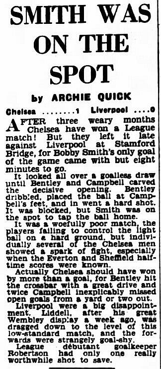 1 Bill Robertson, 2 Sid Bathgate, 3 Sid Tickridge, 4 Reg Williams, 5 Jack Saunders, 6 Bill Dickson, 7 Bobby Campbell, 8 Roy Bentley, 9 Bobby Smith, 10 Ken Armstrong, 11 Billy Gray |