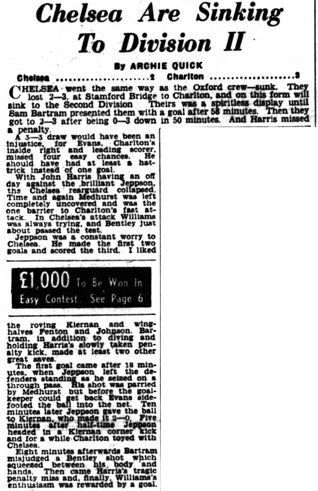 Chelsea (0) 2 Charlton Athletic (2) 3