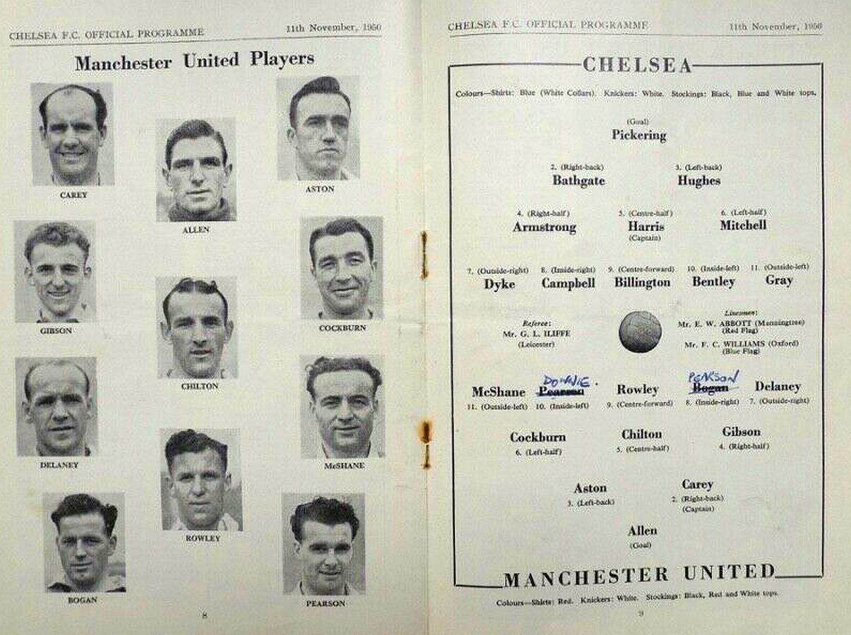 Reg Allen, Johnny Carey, Bill Redman, Henry Cockburn, Allenby Chilton, Bill McGlen, Harry McShane, Stan Pearson, John Aston, Johnny Downie, Jack Rowley |