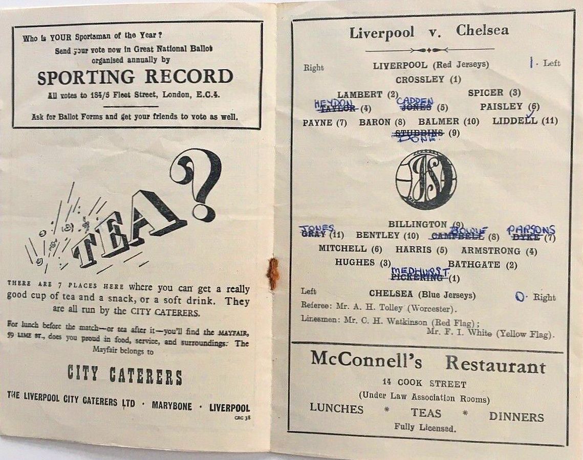 Charlie Ashcroft, Bryan Williams, Eddie Spicer, Phil Taylor, Laurie Hughes, Bob Paisley, Jimmy Payne, Bill Jones, Albert Stubbins, Jack Balmer, Billy Liddell |