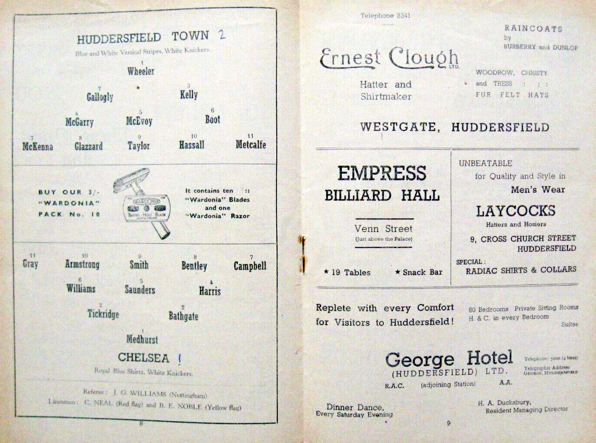 Stan Hanson, Don Howe, Ralph Banks, Malcolm Barrass, Matt Gillies, Danny Murphy, Billy Hughes, Willie Moir, Vince Dillon, Harry Webster, Bobby Langton |