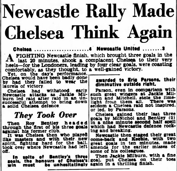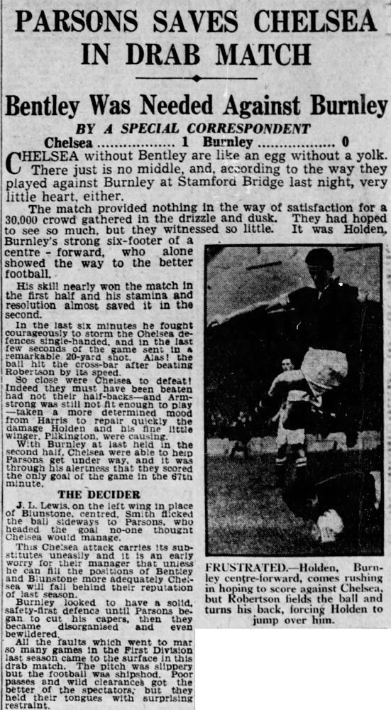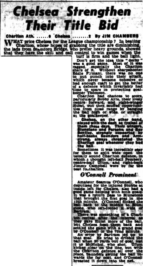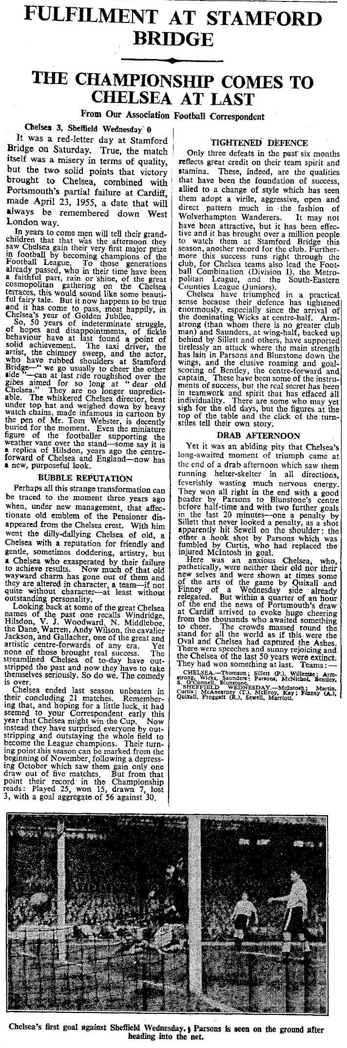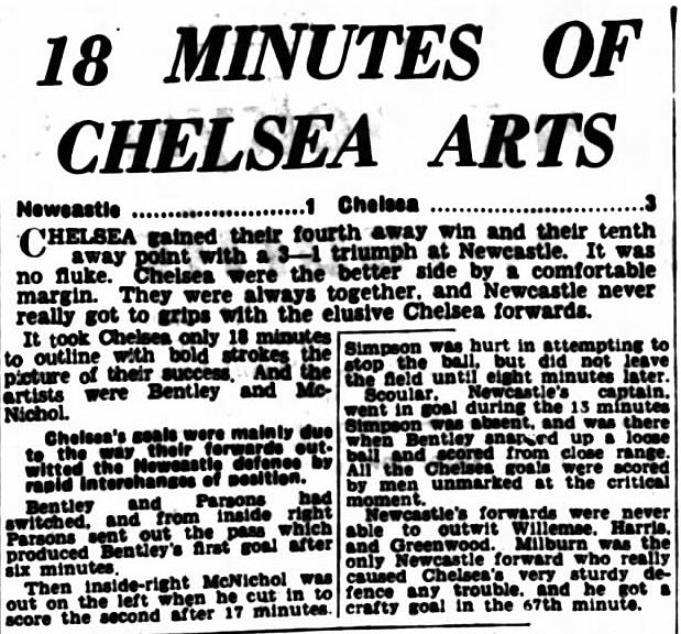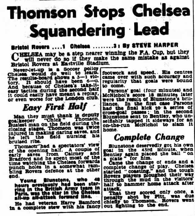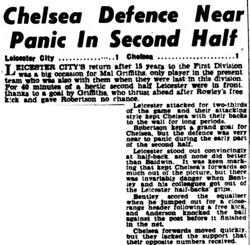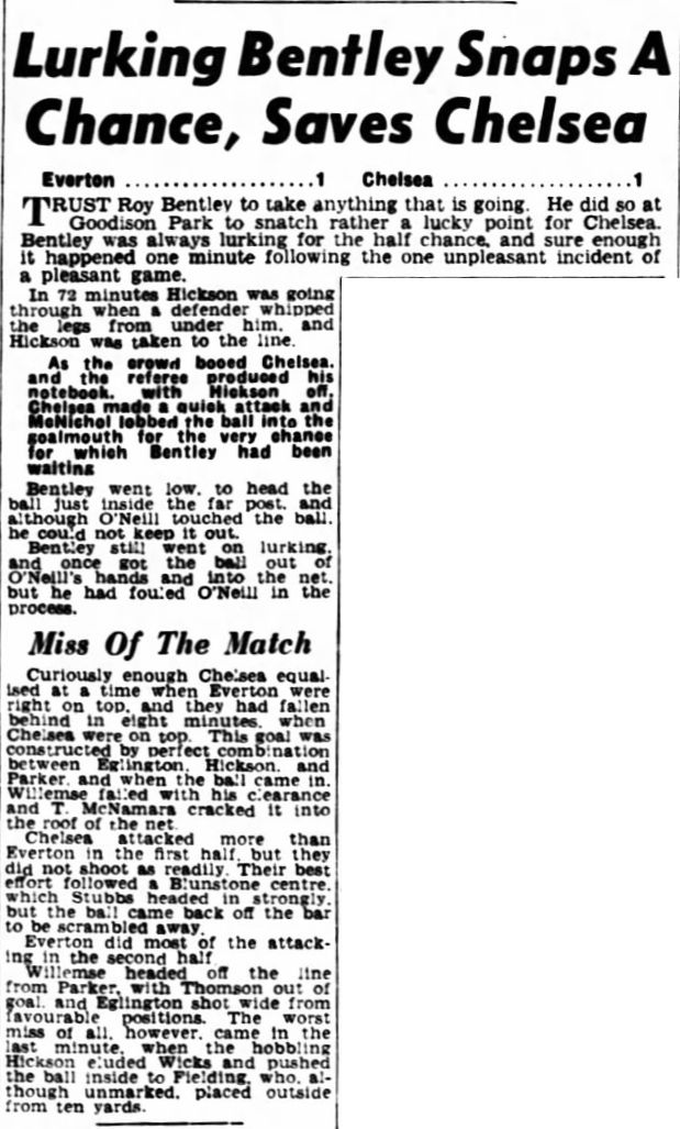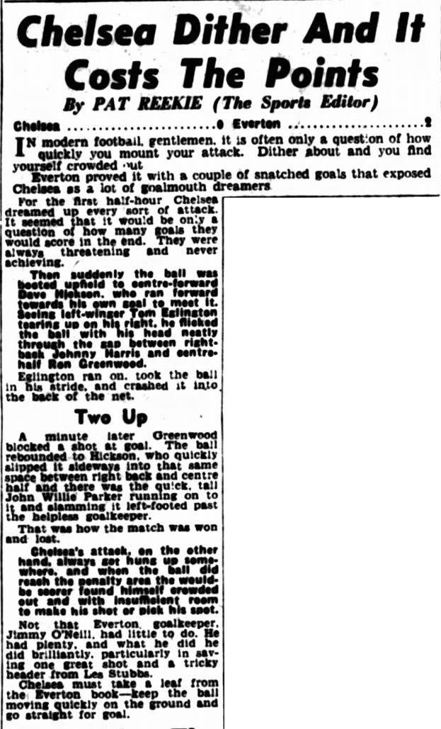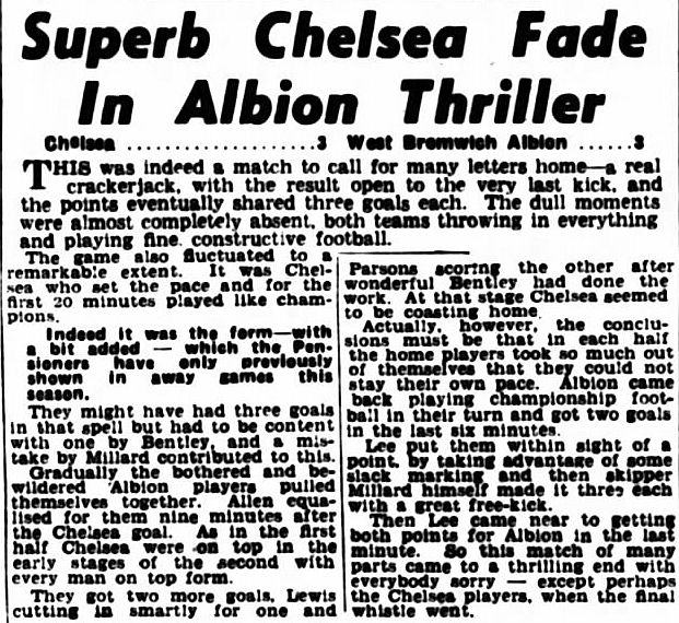 1 Chick Thomson, 2 John Harris, 3 Peter Sillett, 4 Ken Armstrong, 5 Stan Wicks, 6 Derek Saunders, 7 Eric Parsons, 8 Johnny McNichol, 9 Roy Bentley, 10 Peter Brabrook, 11 Frank Blunstone |