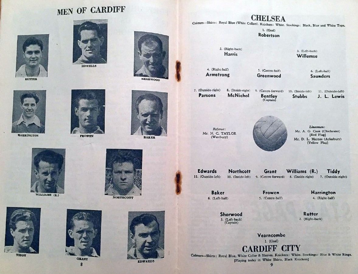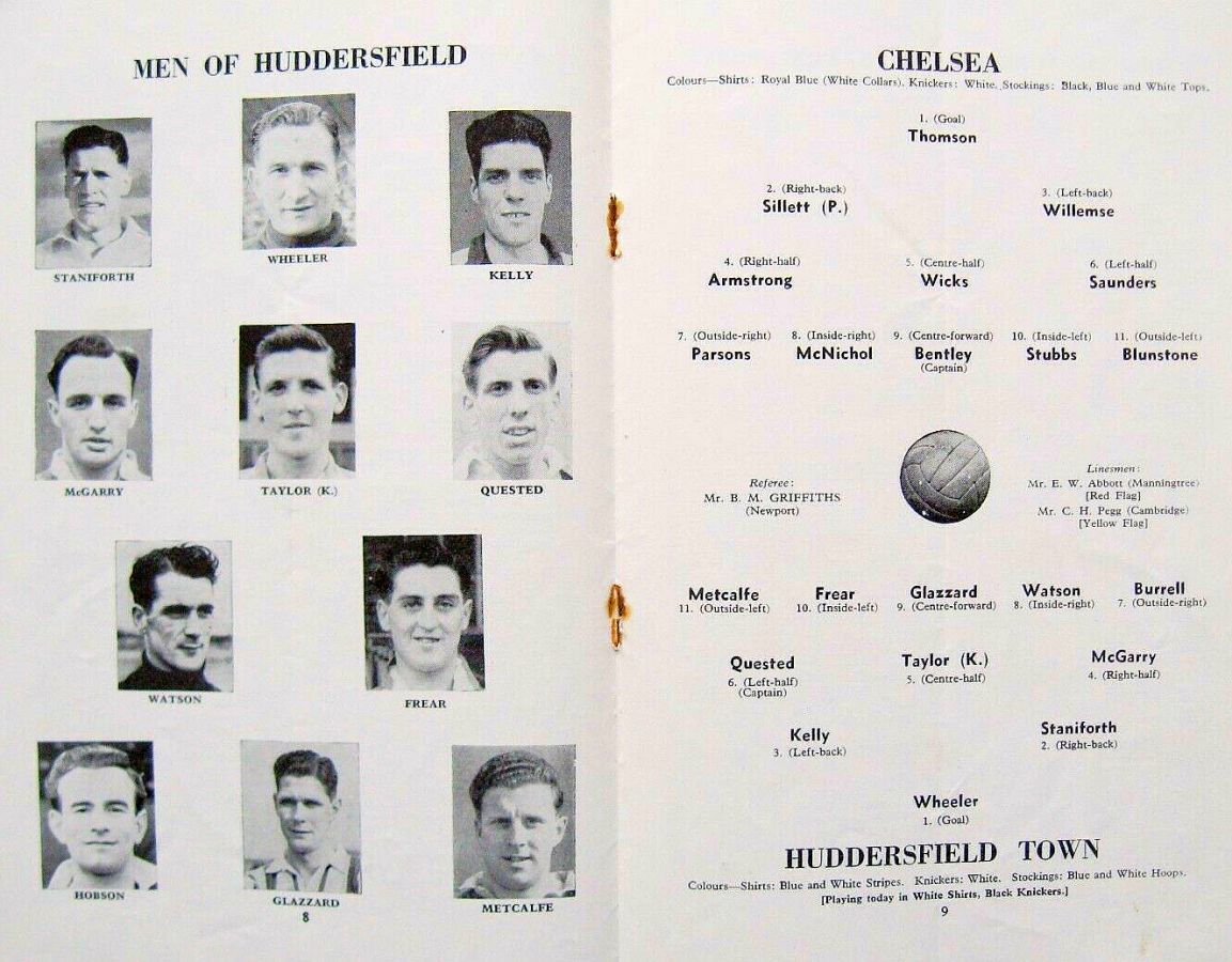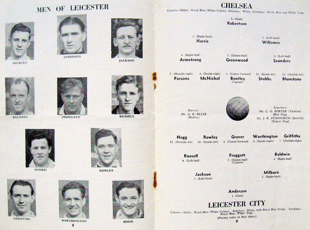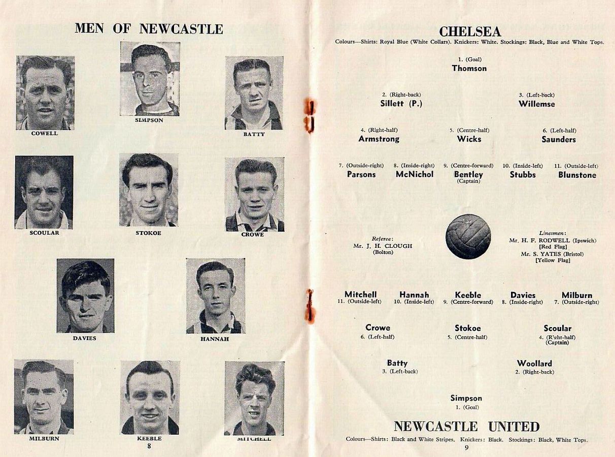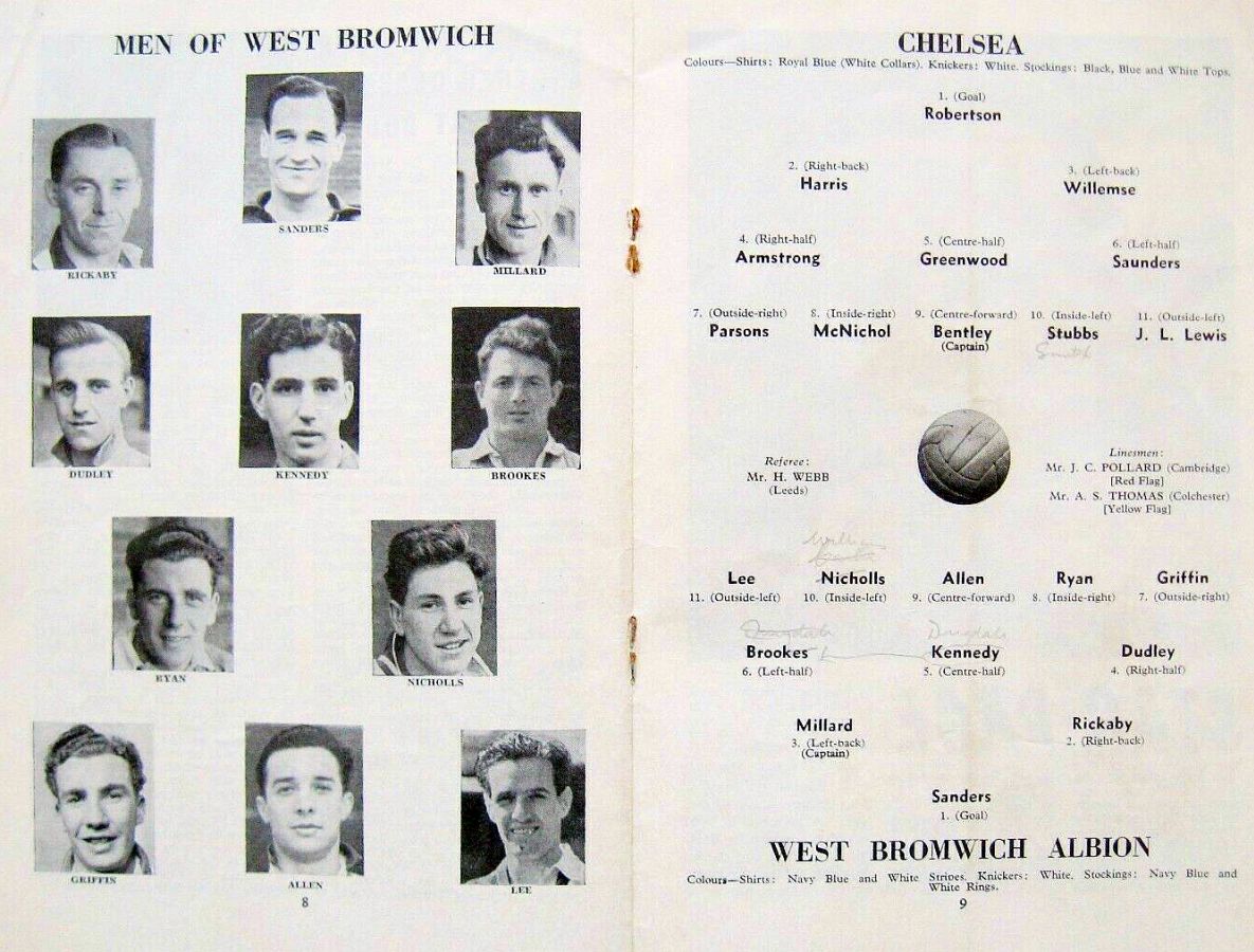 1 Chick Thomson, 2 John Harris, 3 Peter Sillett, 4 Ken Armstrong, 5 Stan Wicks, 6 Derek Saunders, 7 Eric Parsons, 8 Johnny McNichol, 9 Roy Bentley, 10 Peter Brabrook, 11 Stan Willemse |