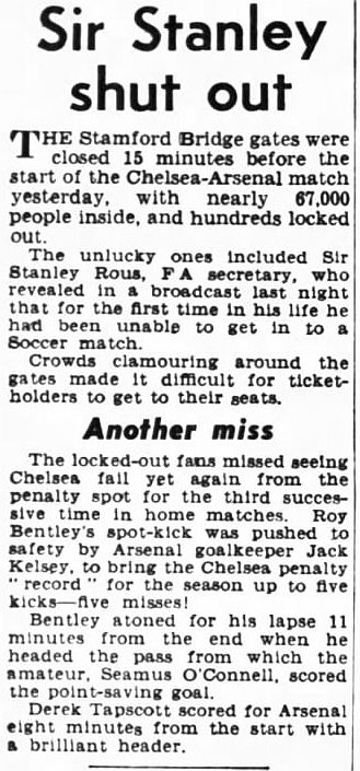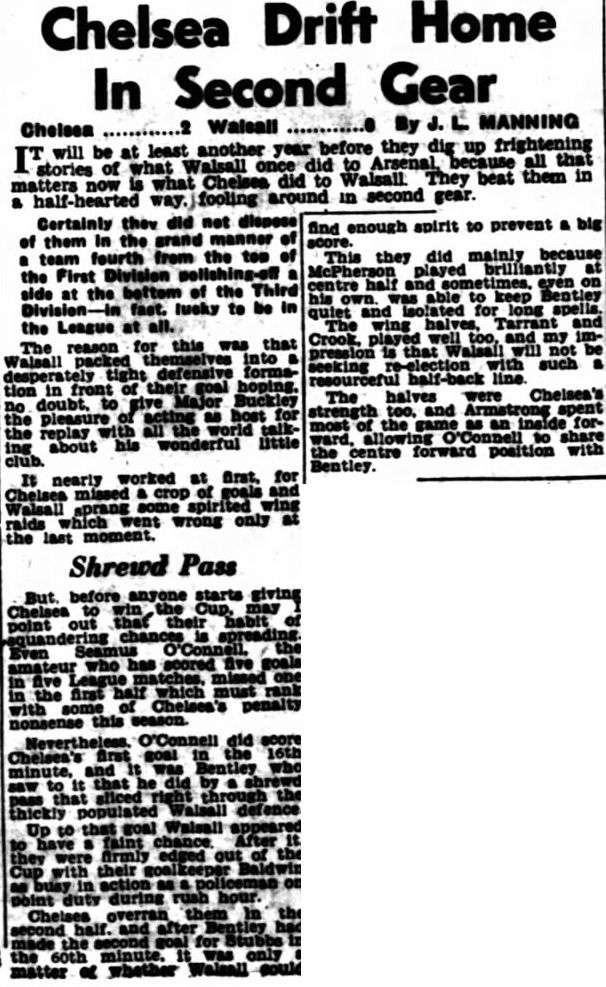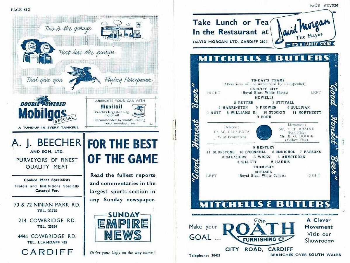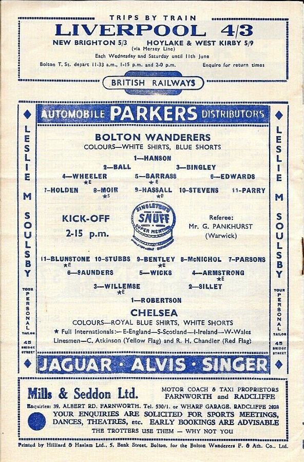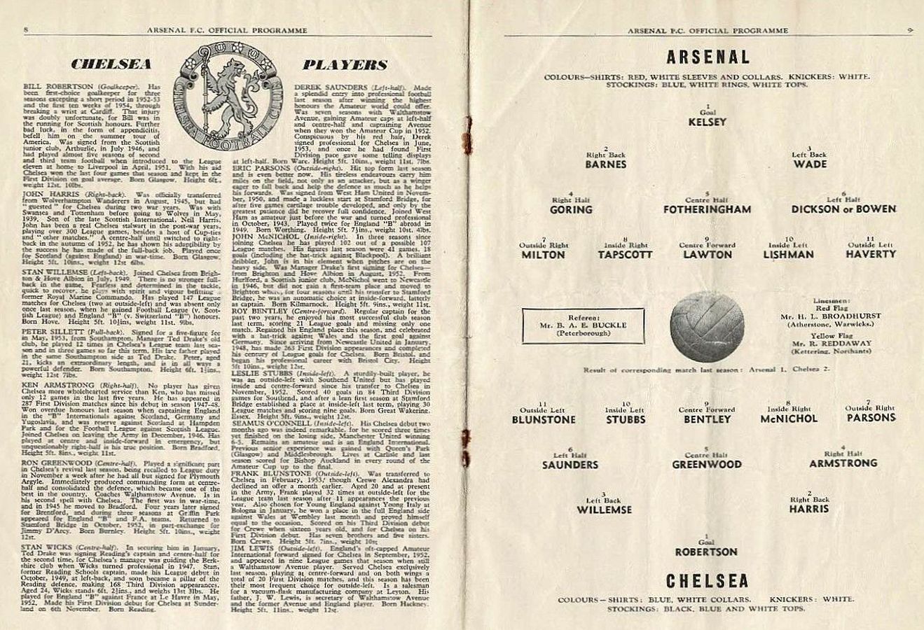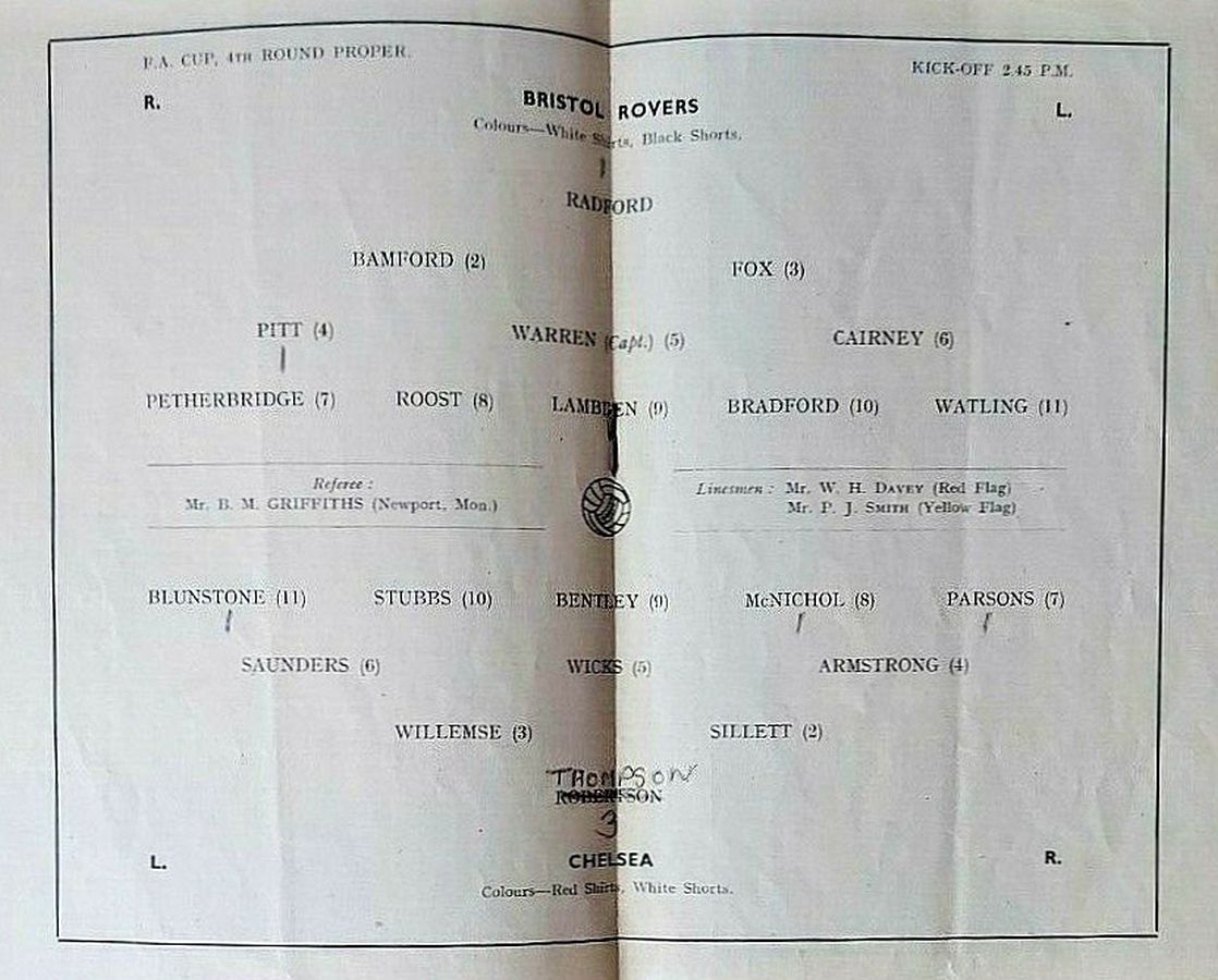 1 Chick Thomson, 2 John Harris, 3 Peter Sillett, 4 Ken Armstrong, 5 Stan Wicks, 6 Derek Saunders, 7 Eric Parsons, 8 Johnny McNichol, 9 Roy Bentley, 10 Peter Brabrook, 11 Stan Willemse |
