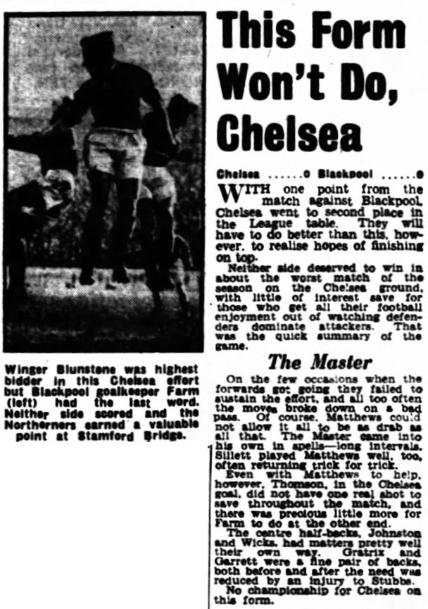 Chelsea (0) 0 Blackpool (0) 0