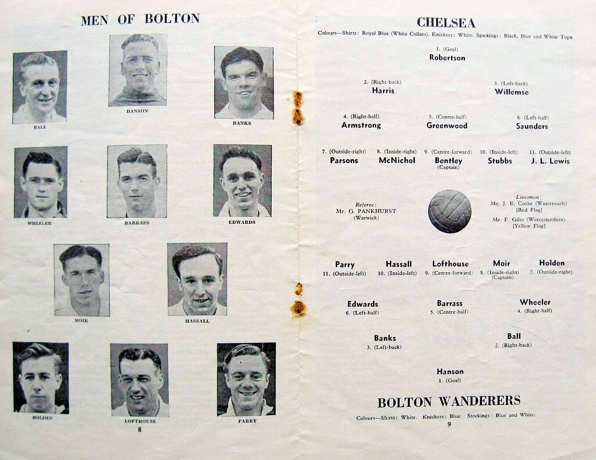 Stan Hanson, John Ball, Tommy Banks, Johnny Wheeler, Malcolm Barrass, Bryan Edwards, Doug Holden, Willie Moir, Nat Lofthouse, Harold Hassall, Ray Parry |