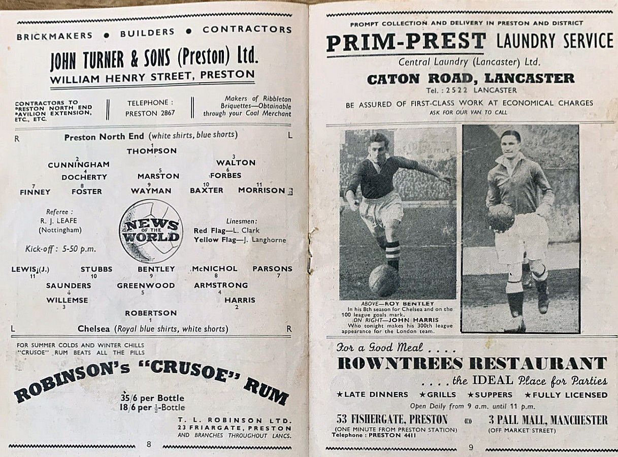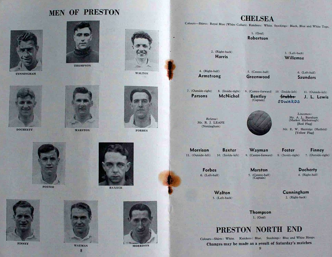 George Thompson, Willie Cunningham, Joe Walton, Tommy Docherty, Joe Marston, Willie Forbes, Tom Finney, Bobby Foster, Charlie Wayman, Jimmy Baxter, Angus Morrison |