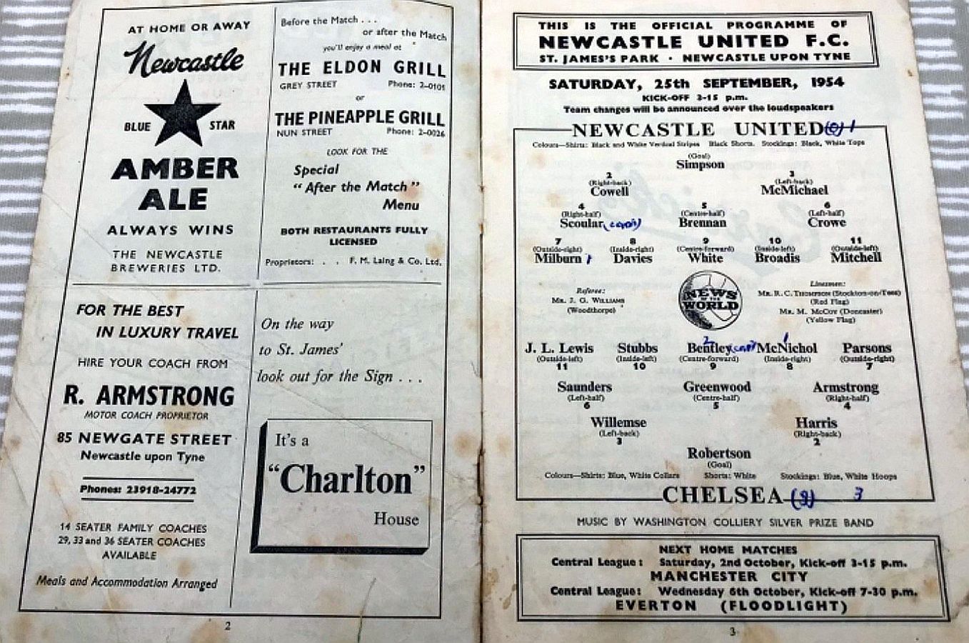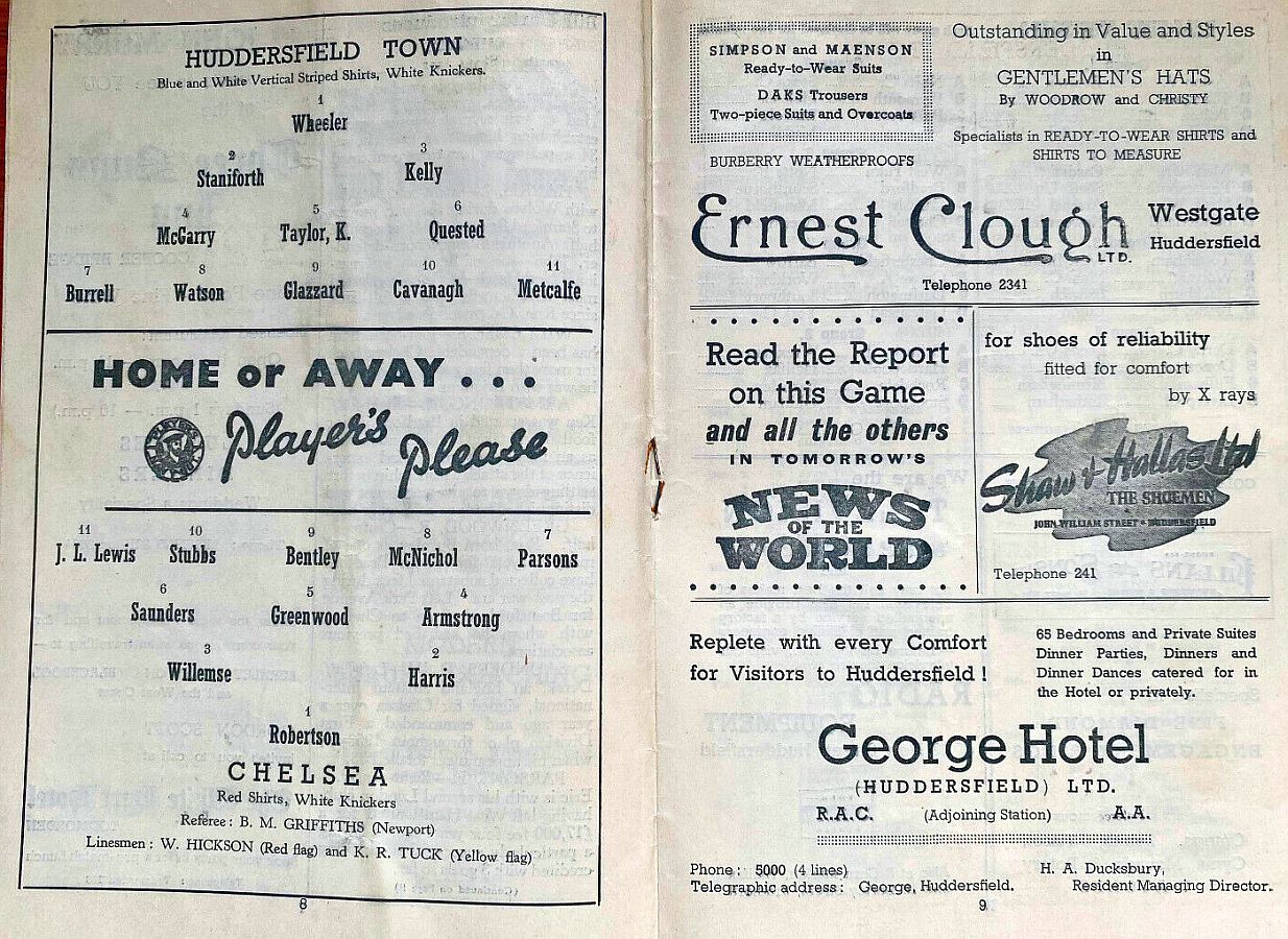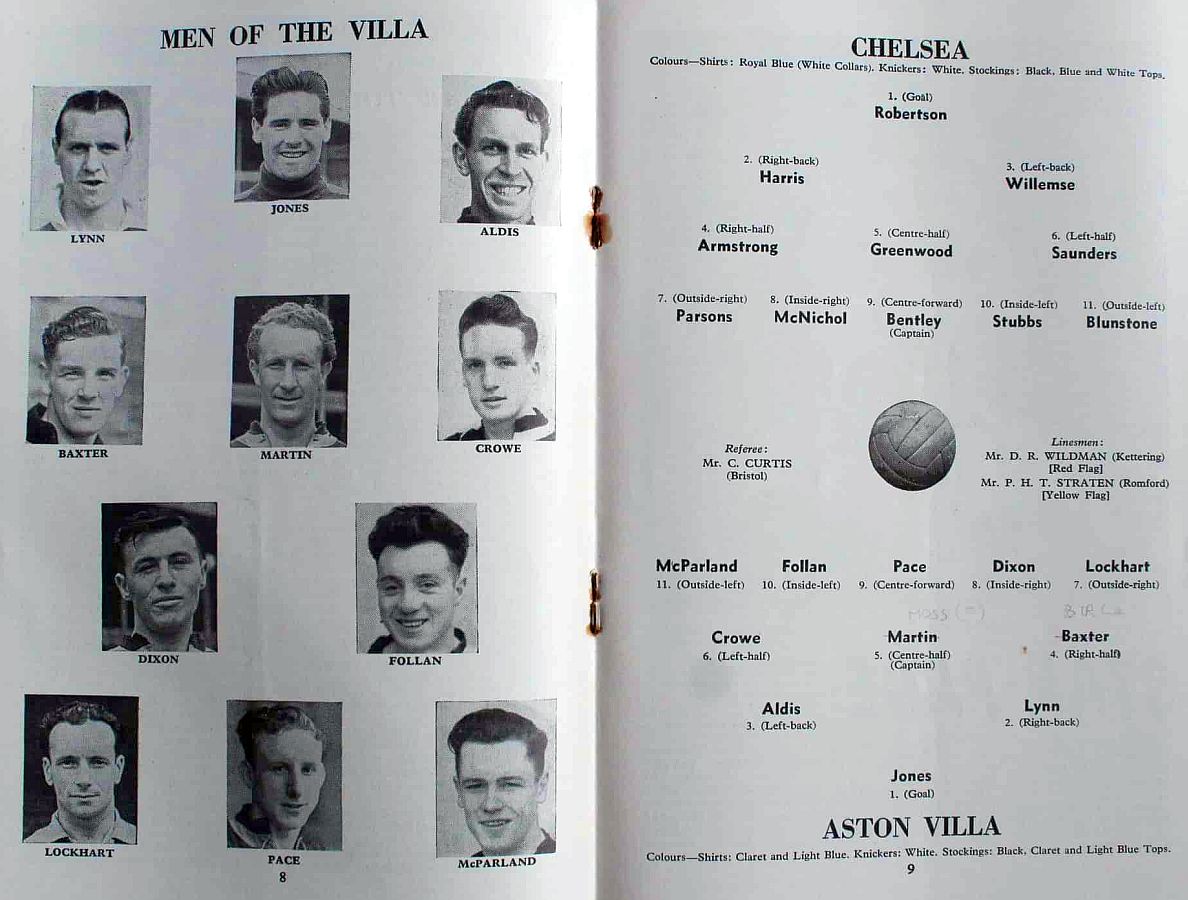 1 Bill Robertson, 2 John Harris, 3 Stan Willemse, 4 Ken Armstrong, 5 Ron Greenwood, 6 Derek Saunders, 7 Eric Parsons, 8 Johnny McNichol, 9 Roy Bentley, 10 Les Stubbs, 11 Jim Lewis |