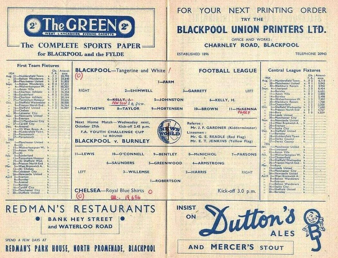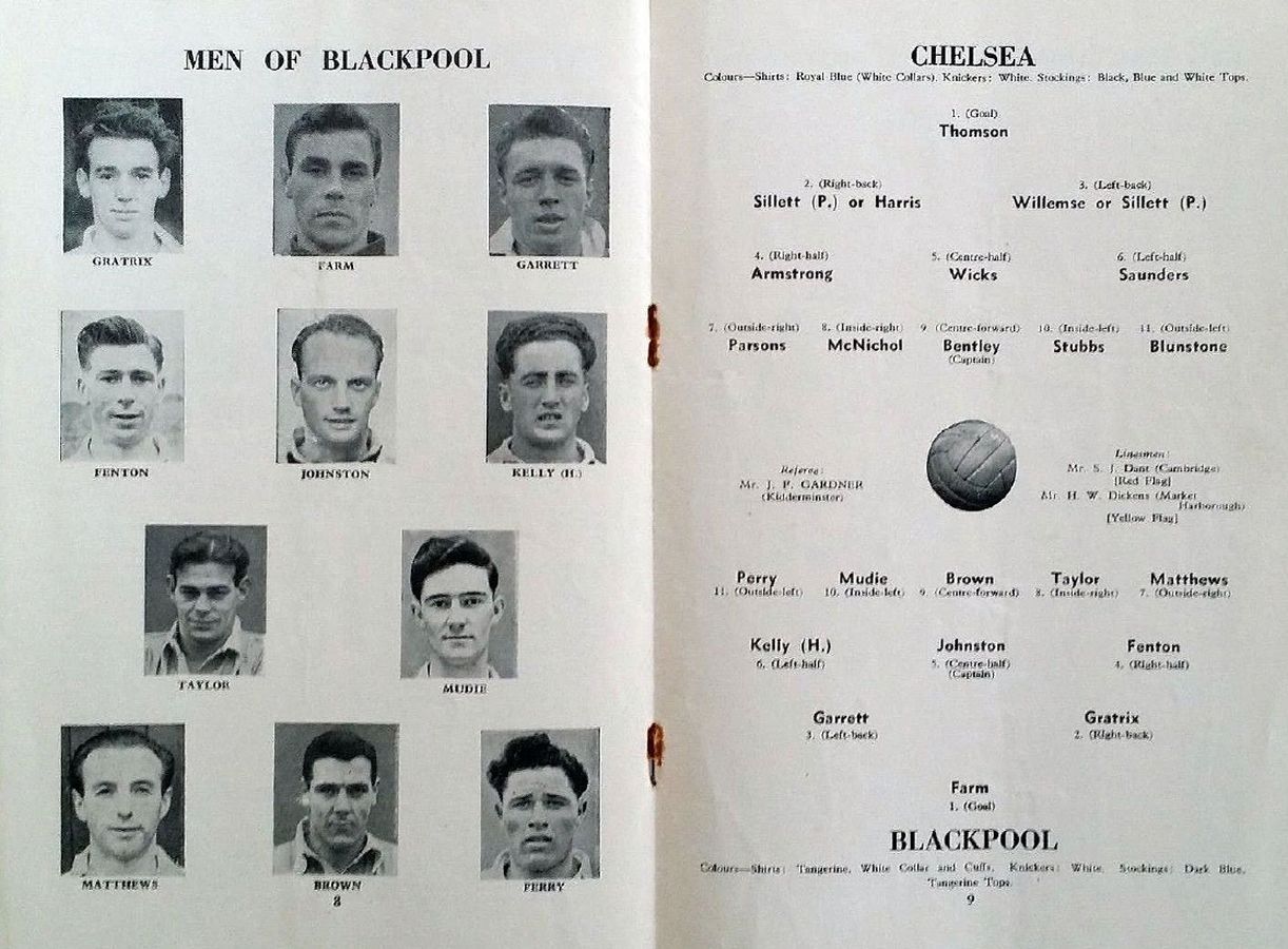 George Farm, Roy Gratrix, Tommy Garrett, Ewan Fenton, Harry Johnston, Hugh Kelly, Stanley Matthews, Ernie Taylor, Allan Brown, Jackie Mudie, Bill Perry |