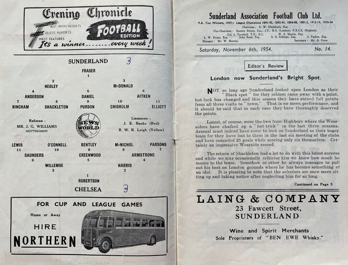 Willie Fraser, Jack Hedley, Joe McDonald, Stan Anderson, Ray Daniel, George Aitken, Harry Kirtley, Len Shackleton, Charlie Fleming, Ken Chisholm, Billy Elliott |