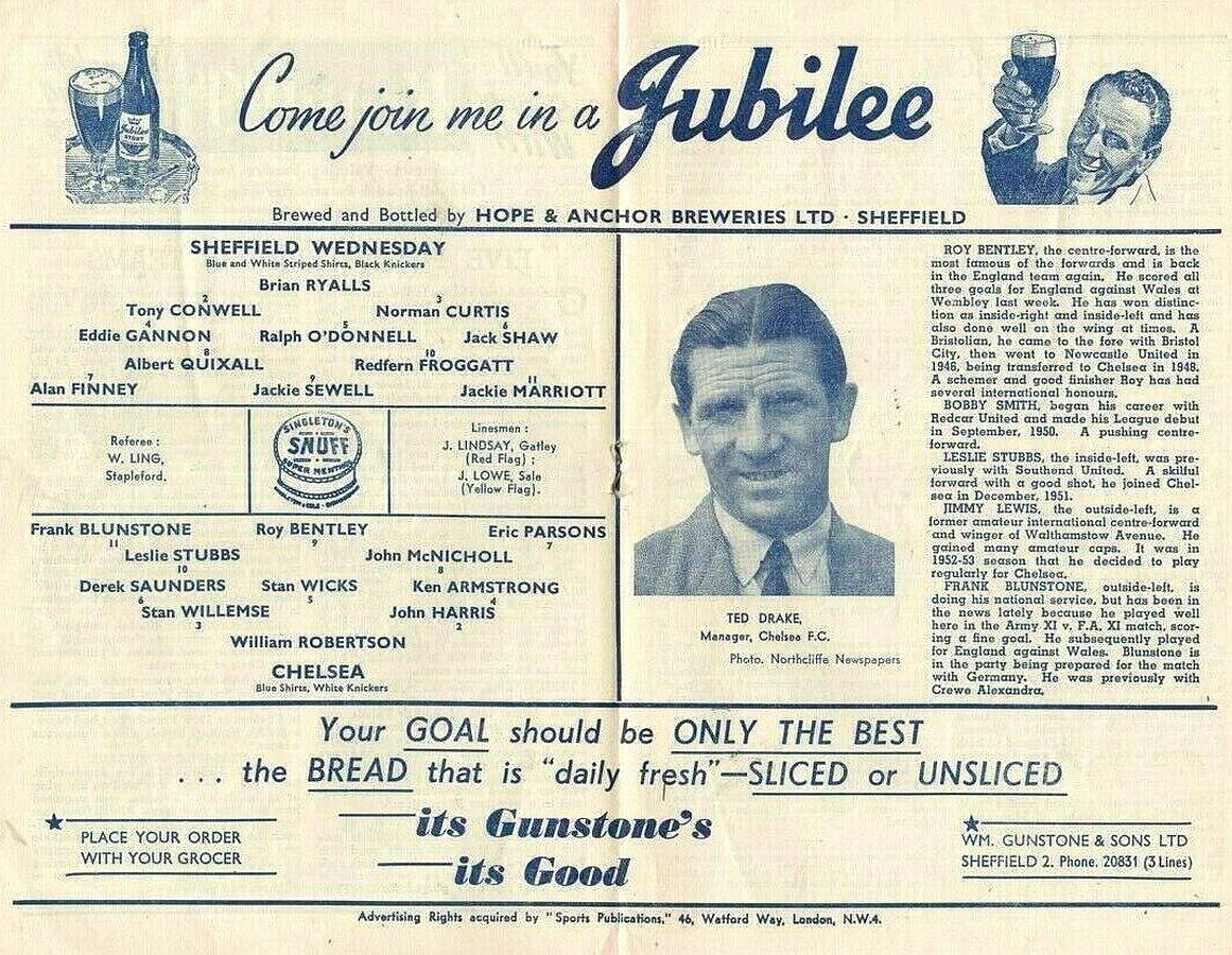 Dave McIntosh, Jack Martin, Norman Curtis, Tom McAnearney, Don McEvoy, Tony Kay, Alan Finney, Albert Quixall, Redfern Froggatt, Jackie Sewell, Jack Marriott |