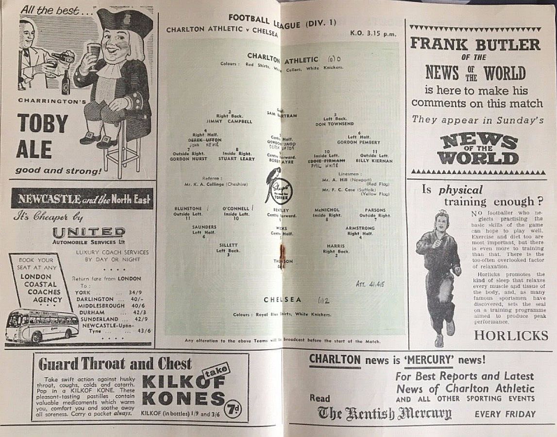 Sam Bartram, Jock Campbell, Don Townsend, John Hewie, Derek Ufton, Gordon Pembery, Gordon Hurst, Stuart Leary, Bobby Ayre, Ron White, Billy Kiernan |