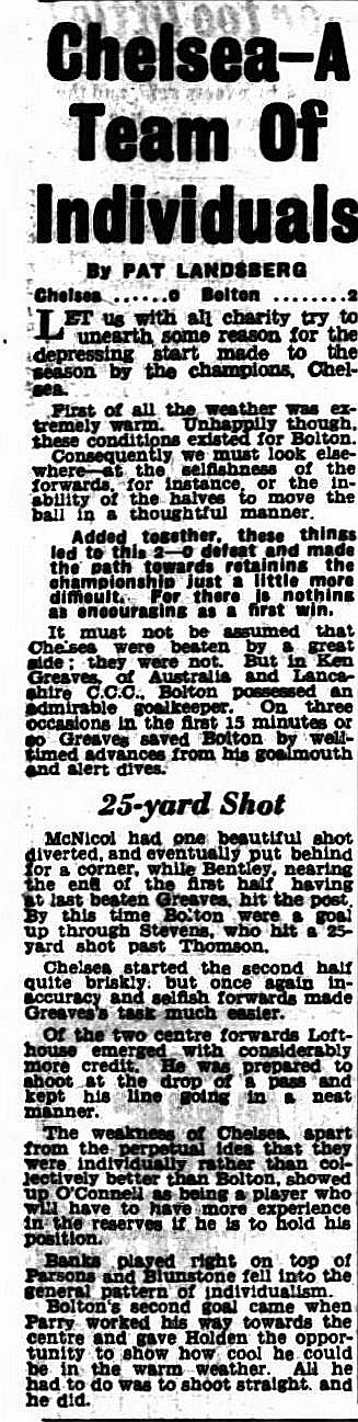 1 Bill Robertson, 2 Peter Sillett, 3 Stan Willemse, 4 Brian Nicholas, 5 Stan Wicks, 6 Derek Saunders, 7 Eric Parsons, 8 Johnny McNichol, 9 Roy Bentley, 10 Les Stubbs, 11 Frank Blunstone |