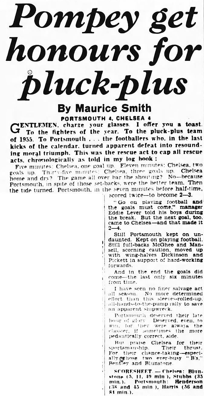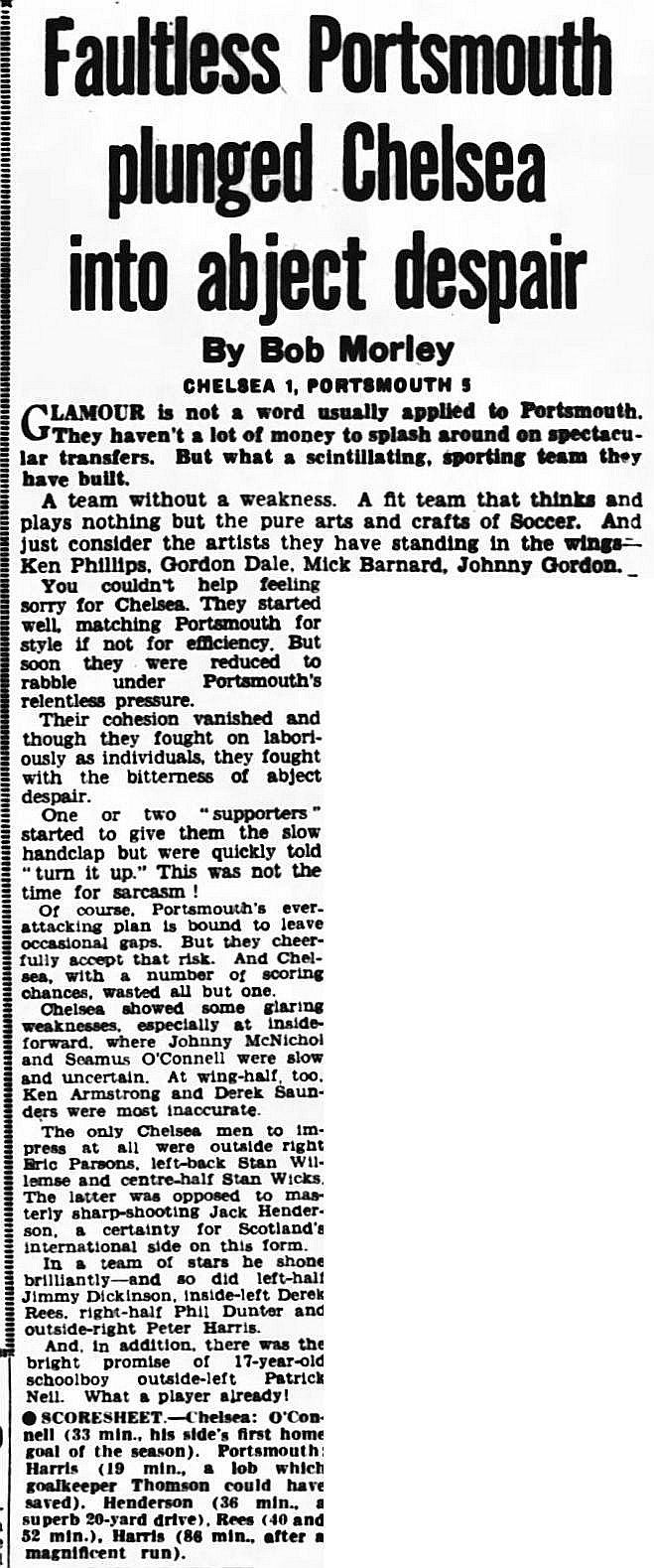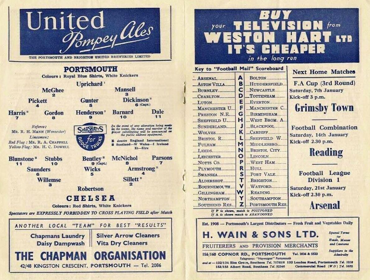 Norman Uprichard, Tommy McGhee, Jack Mansell, Phil Gunter, Duggie Reid, Jimmy Dickinson, Peter Harris, Reg Pickett, Jackie Henderson, Derrick Rees, Pat Neil |