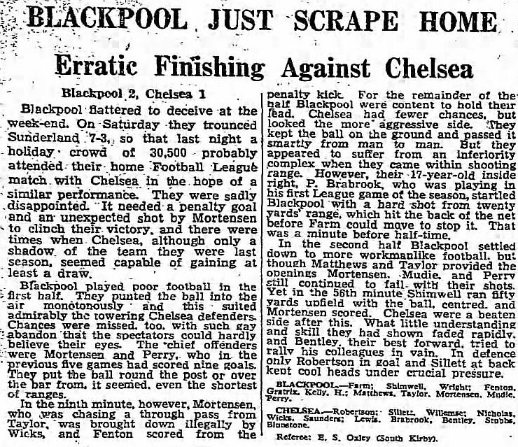 Ewan Fenton 9 (Pen), Stan Mortensen 56 |
