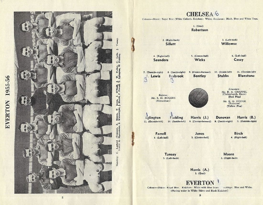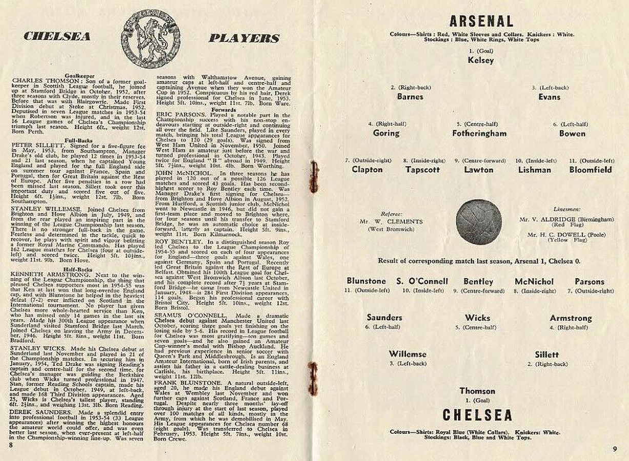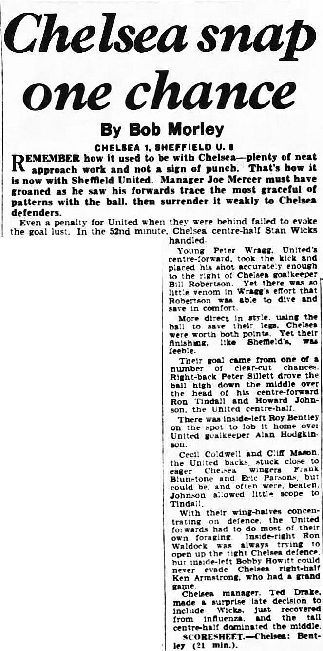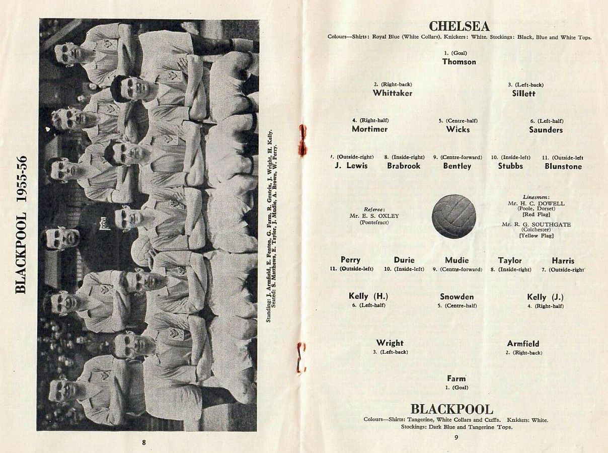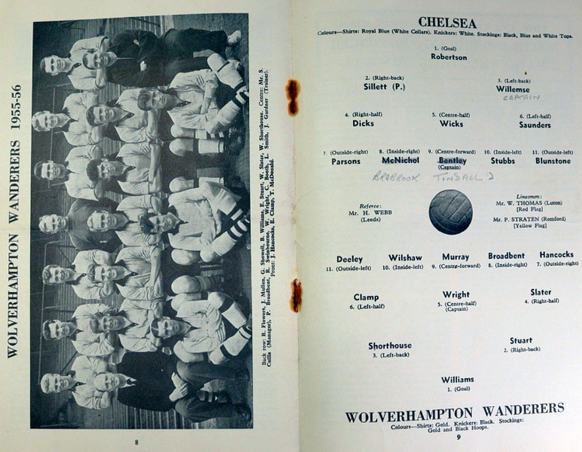 1 Bill Robertson, 2 Peter Sillett, 3 Stan Willemse, 4 Brian Nicholas, 5 Stan Wicks, 6 Derek Saunders, 7 Eric Parsons, 8 Peter Brabrook, 9 Roy Bentley, 10 Les Stubbs, 11 Frank Blunstone |