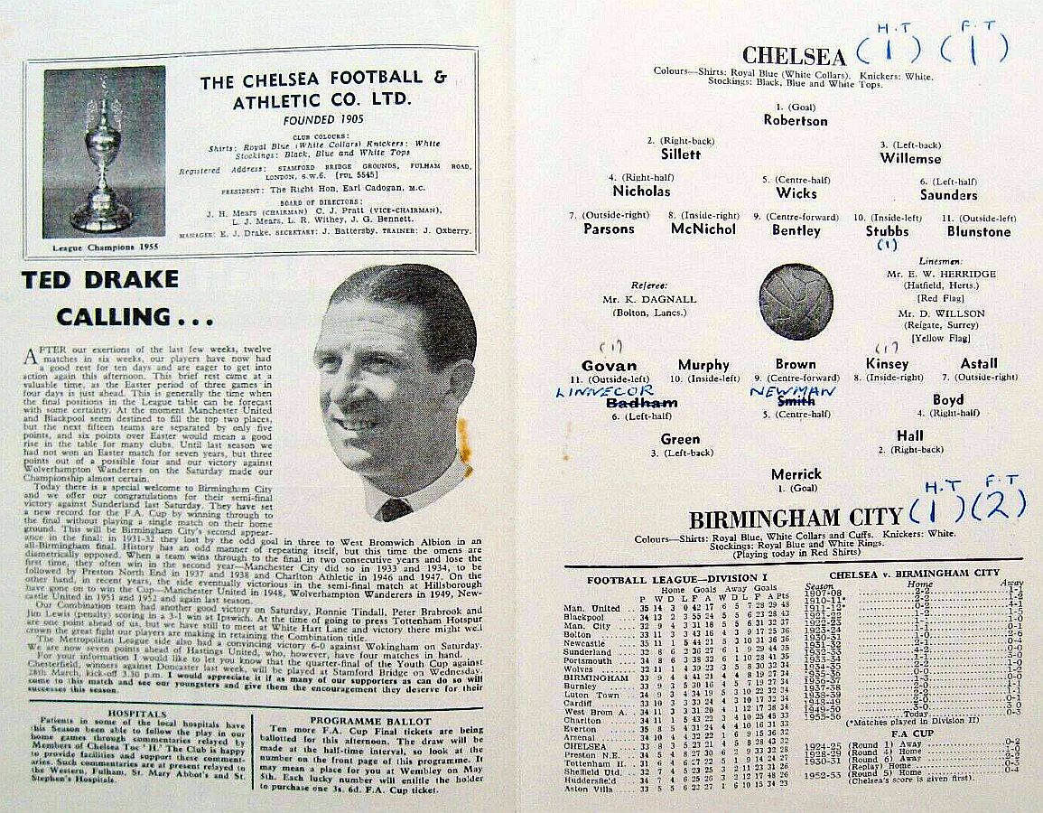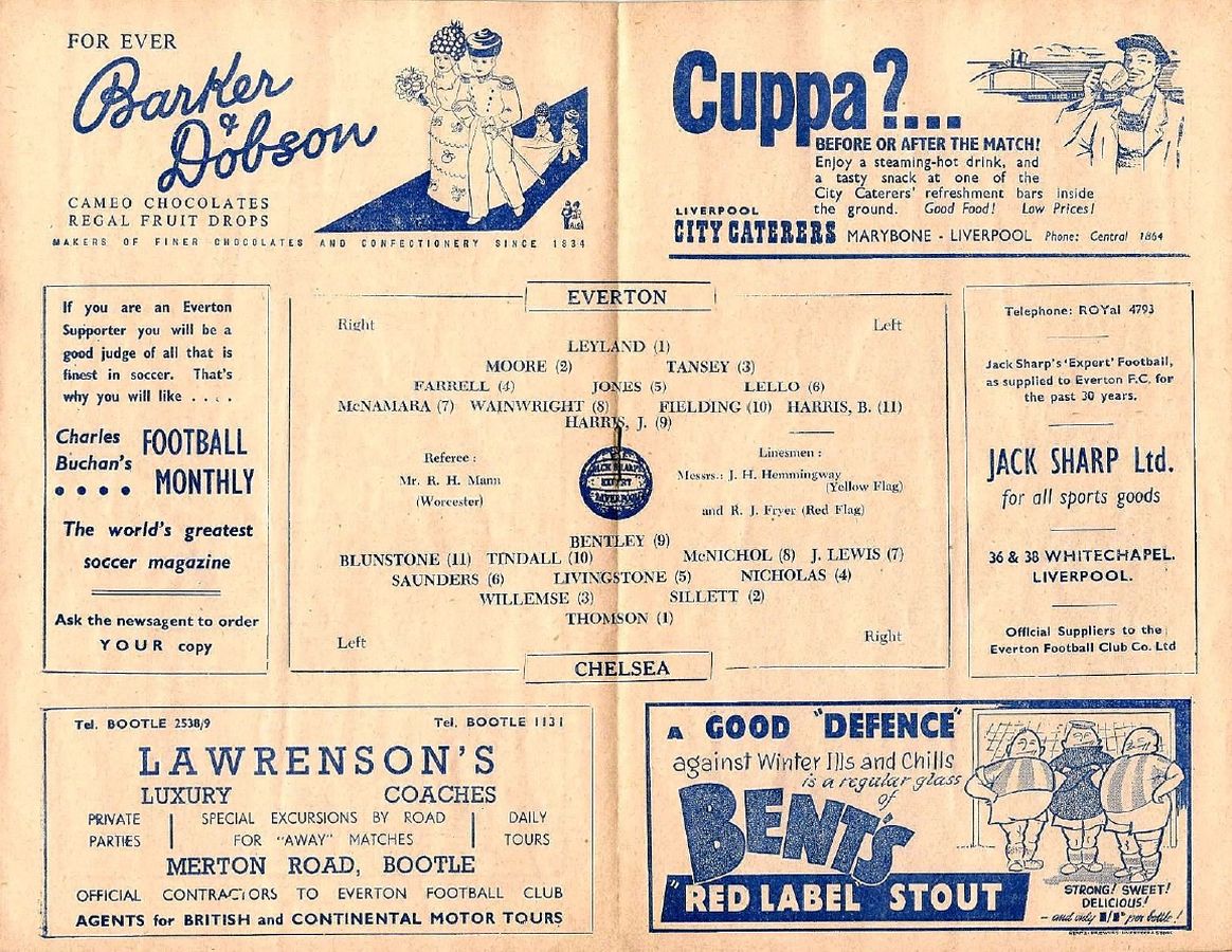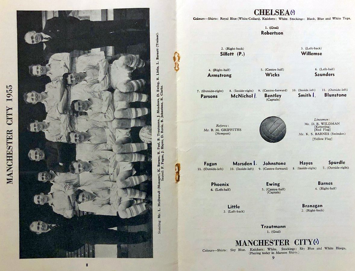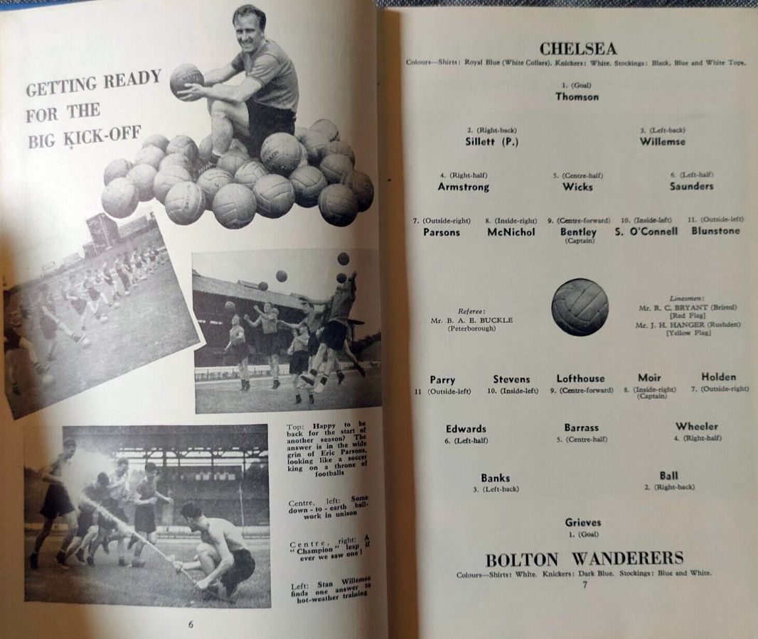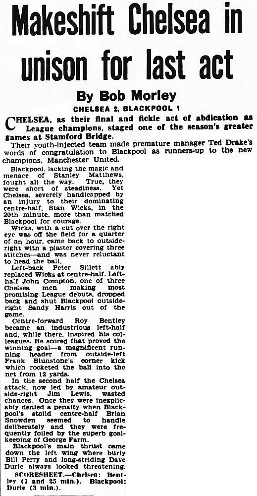 1 Bill Robertson, 2 Peter Sillett, 3 Stan Willemse, 4 Brian Nicholas, 5 Stan Wicks, 6 Derek Saunders, 7 Eric Parsons, 8 Peter Brabrook, 9 Roy Bentley, 10 Les Stubbs, 11 Frank Blunstone |