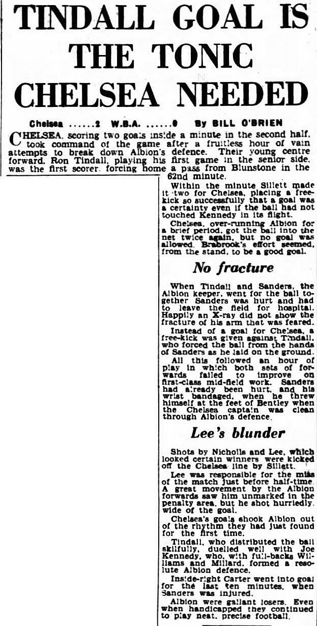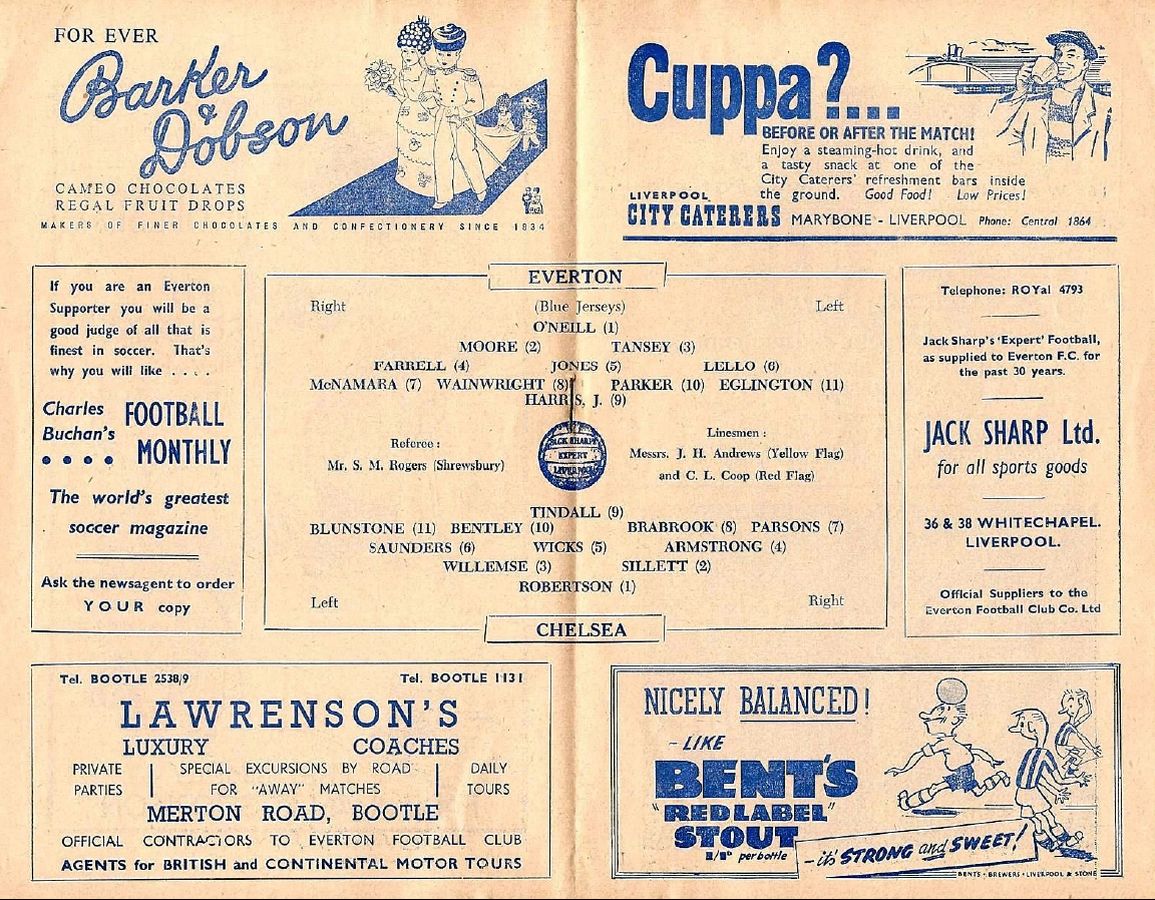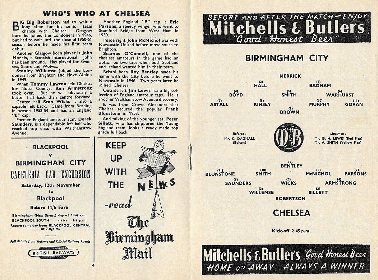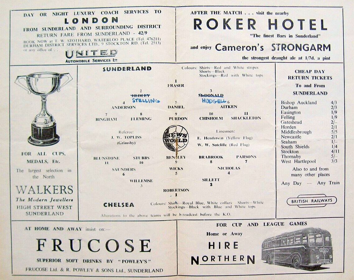 1 Bill Robertson, 2 Peter Sillett, 3 Stan Willemse, 4 Brian Nicholas, 5 Stan Wicks, 6 Derek Saunders, 7 Eric Parsons, 8 Peter Brabrook, 9 Roy Bentley, 10 Les Stubbs, 11 Frank Blunstone |