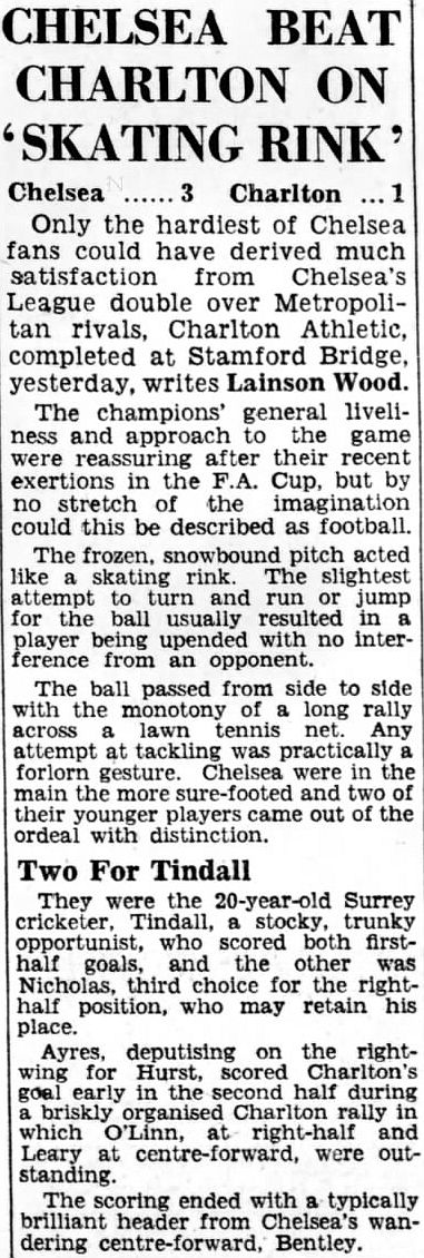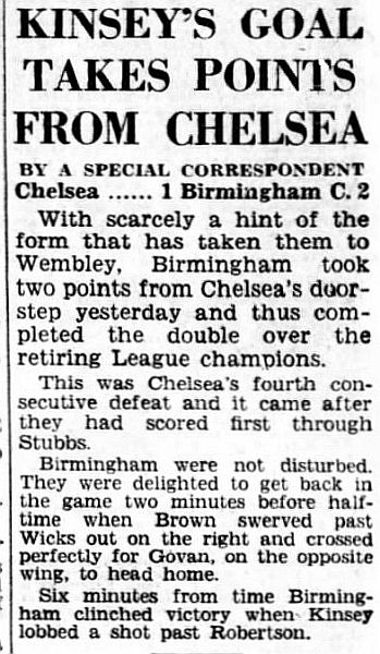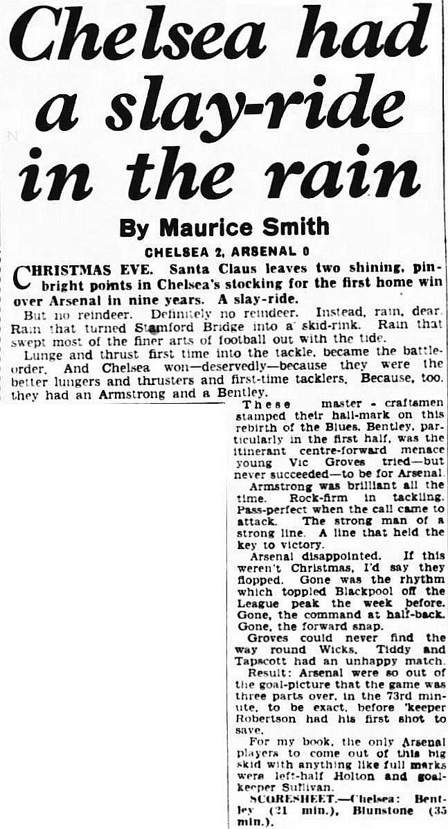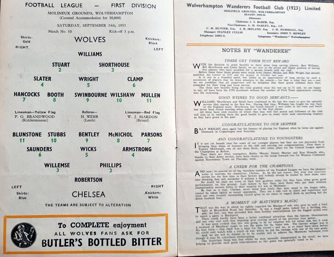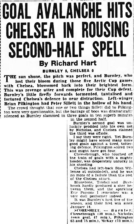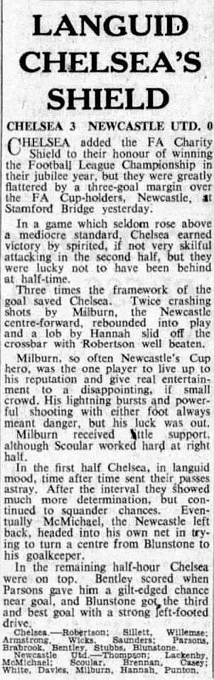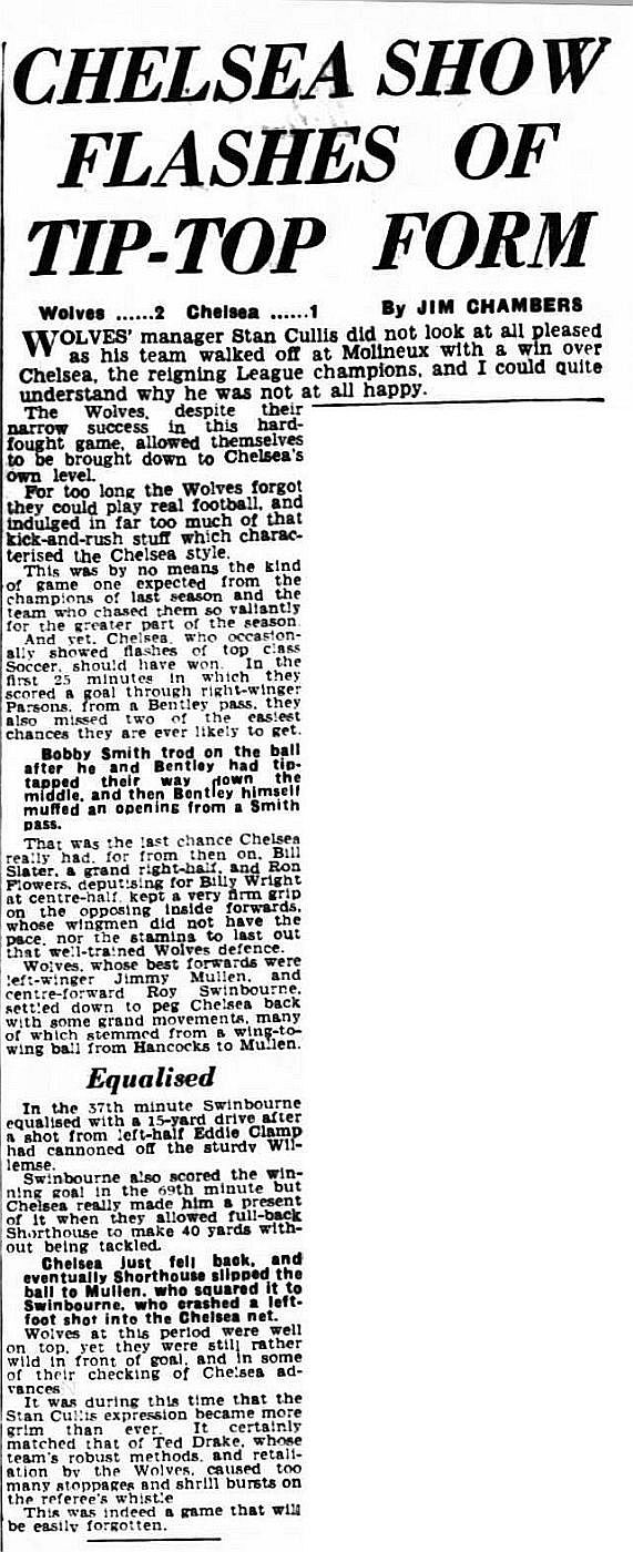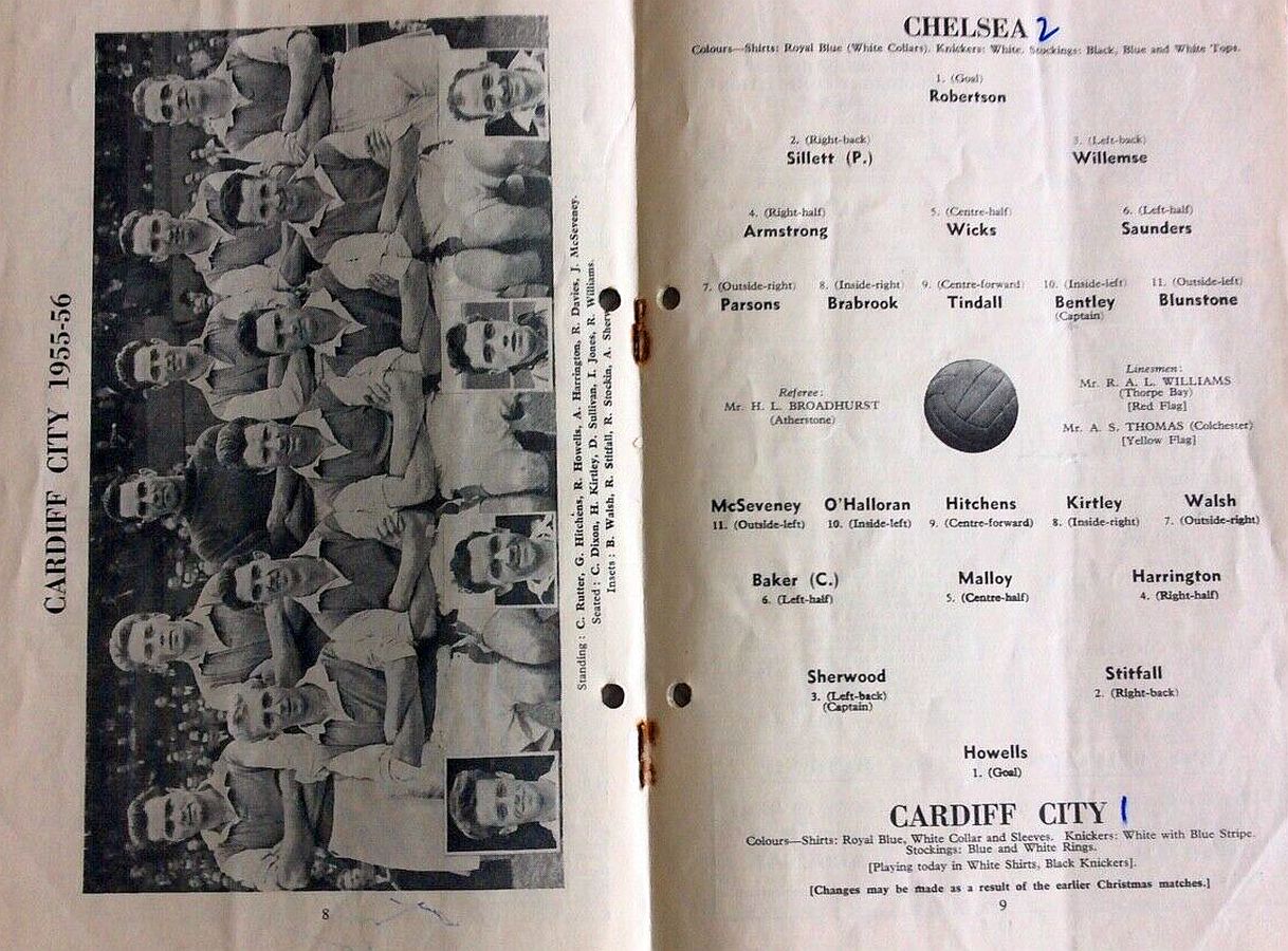 1 Bill Robertson, 2 Peter Sillett, 3 Stan Willemse, 4 Brian Nicholas, 5 Stan Wicks, 6 Derek Saunders, 7 Eric Parsons, 8 Peter Brabrook, 9 Roy Bentley, 10 Les Stubbs, 11 Frank Blunstone |