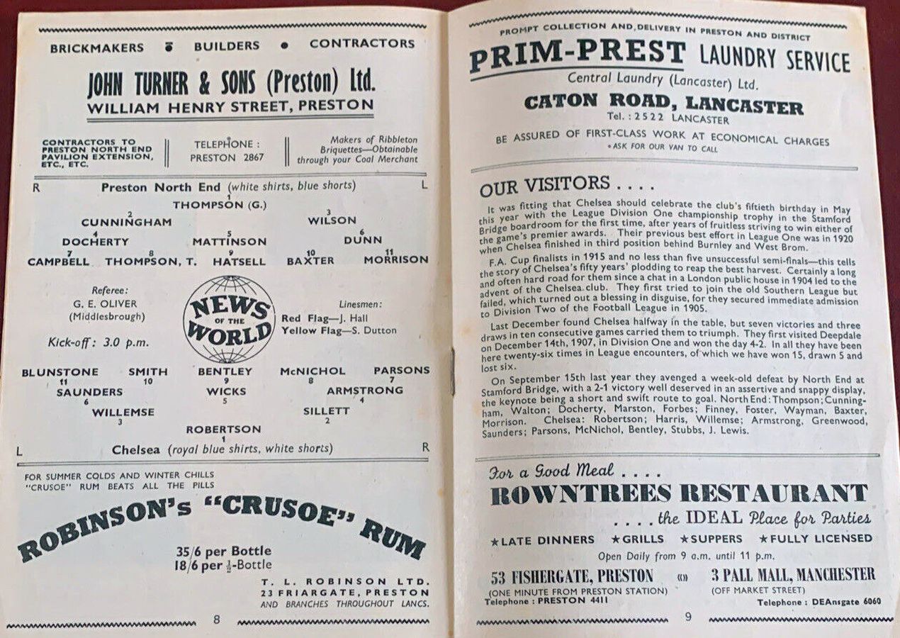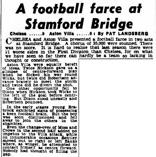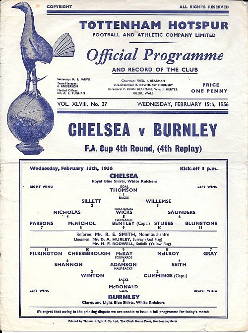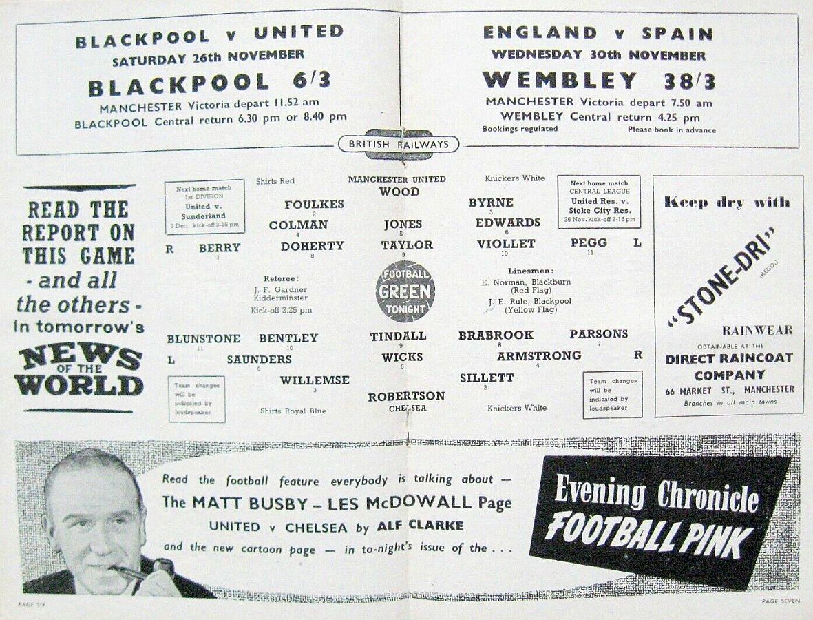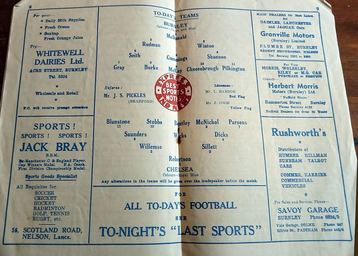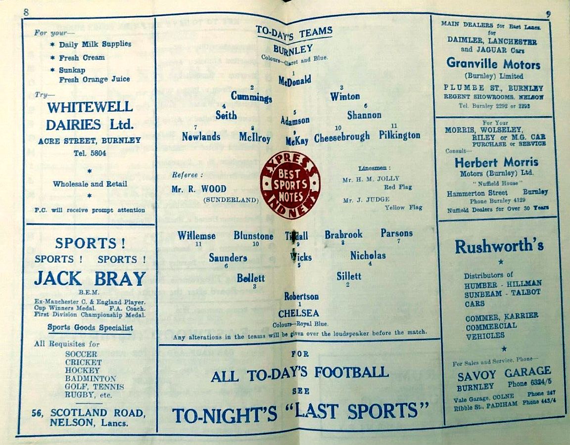 1 Bill Robertson, 2 Peter Sillett, 3 Stan Willemse, 4 Derek Saunders, 5 Stan Wicks, 6 Leonard Casey, 7 Jim Lewis, 8 Peter Brabrook, 9 Roy Bentley, 10 Les Stubbs, 11 Frank Blunstone |