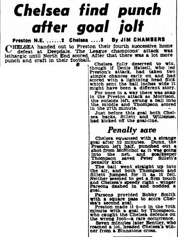 George Farm, David Frith, Jackie Wright, Jimmy Kelly, Bryan Snowdon, Hugh Kelly, Sandy Harris, Ernie Taylor, Jackie Mudie, Dave Durie, Bill Perry |