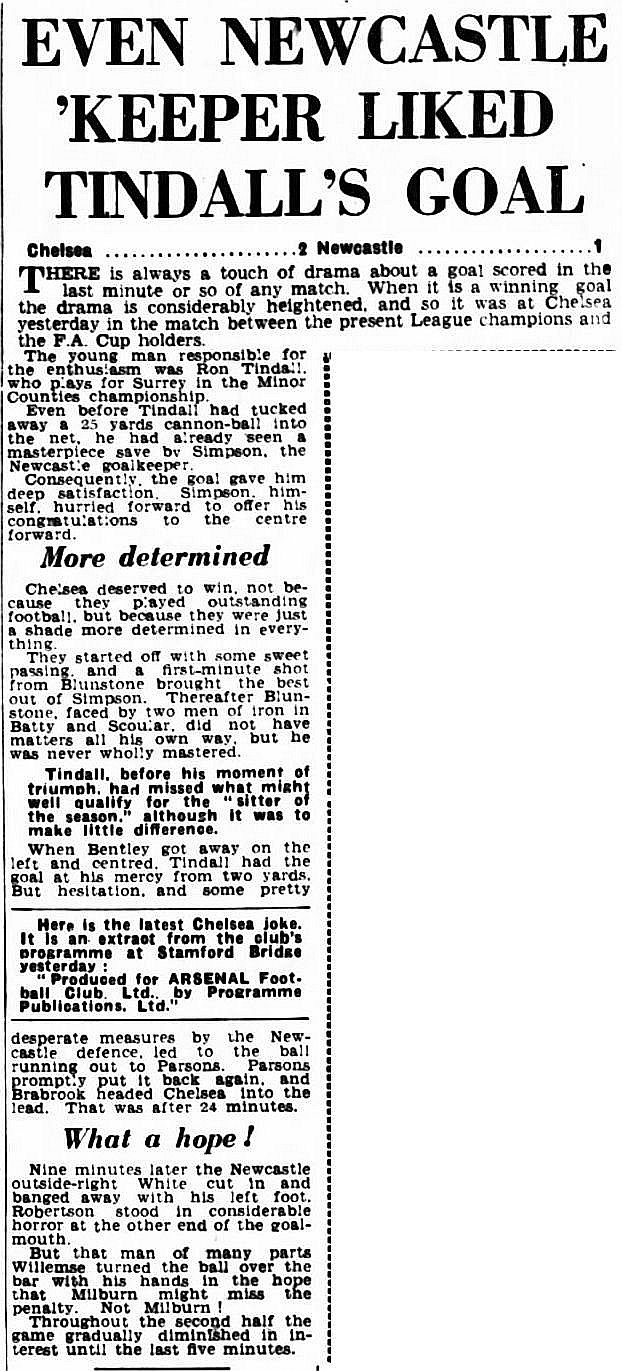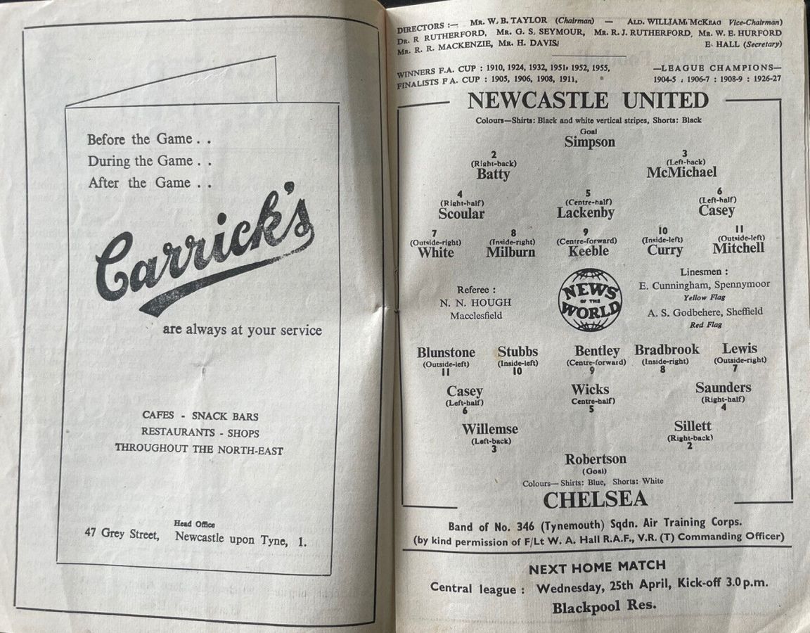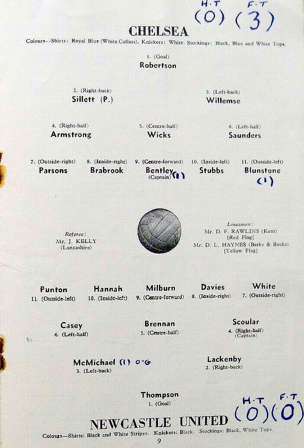 Ronnie Simpson, Ron Batty, Alf McMichael, Jimmy Scoular, George Lackenby, Tommy Casey, Len White, Jackie Milburn, Vic Keeble, Bill Curry, Bobby Mitchell |