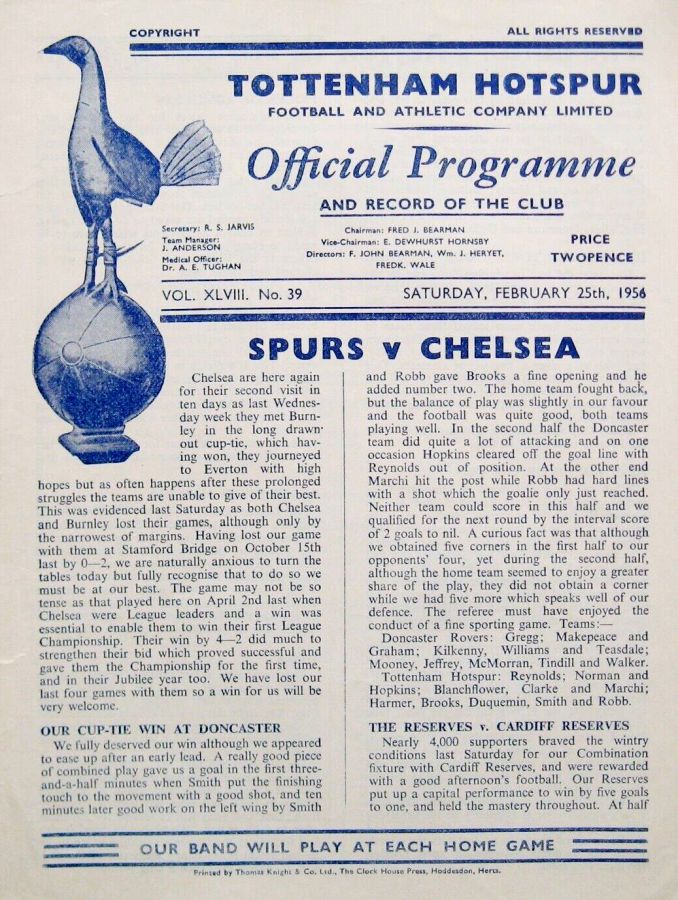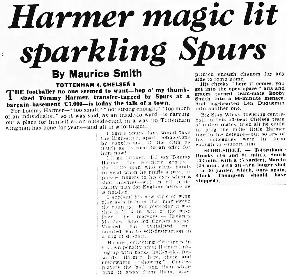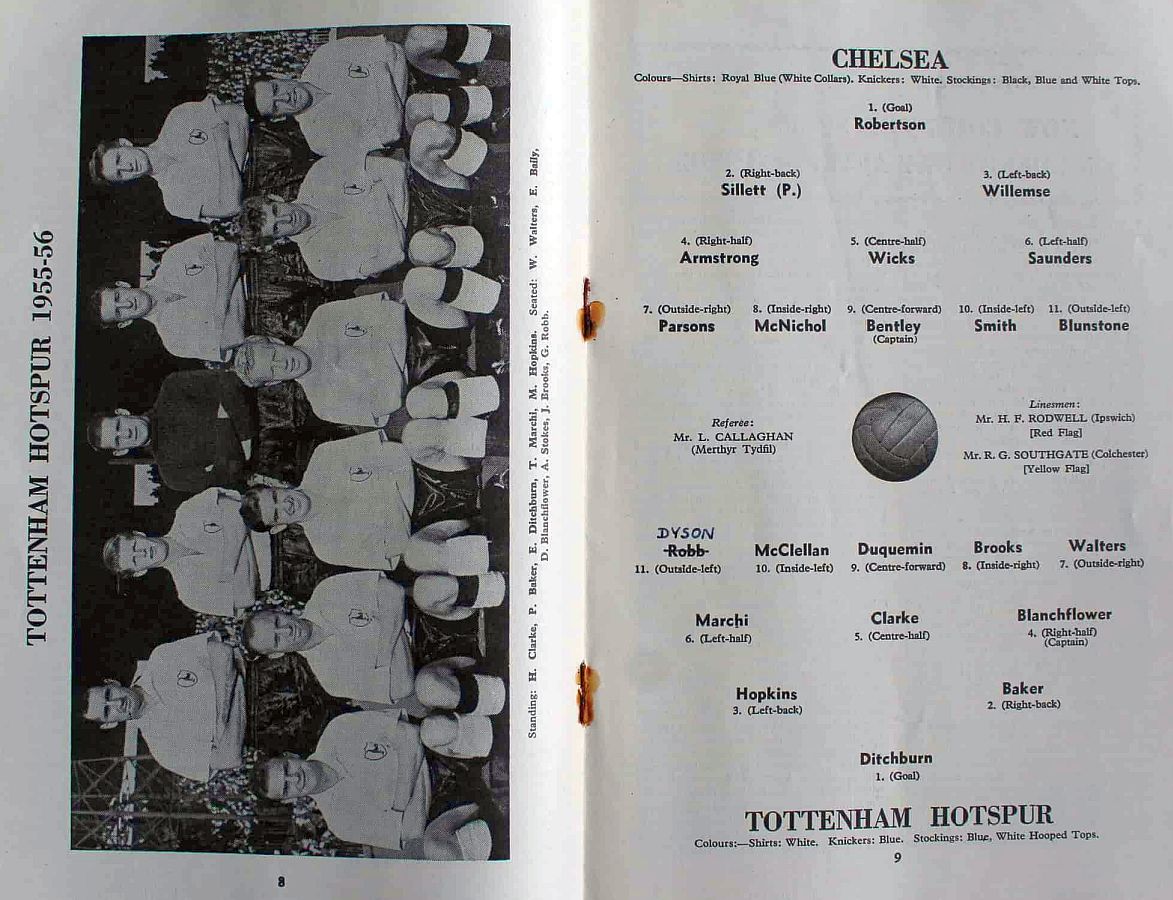 Ron Reynolds, Maurice Norman, Mel Hopkins, Danny Blanchflower, Harry Clarke, Tony Marchi, Tommy Harmer, Johnny Brooks, Len Duquemin, Bobby Smith, George Robb |
