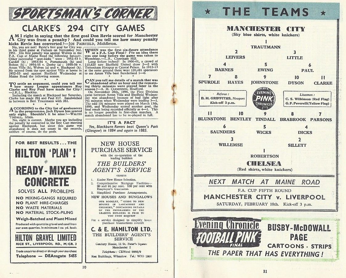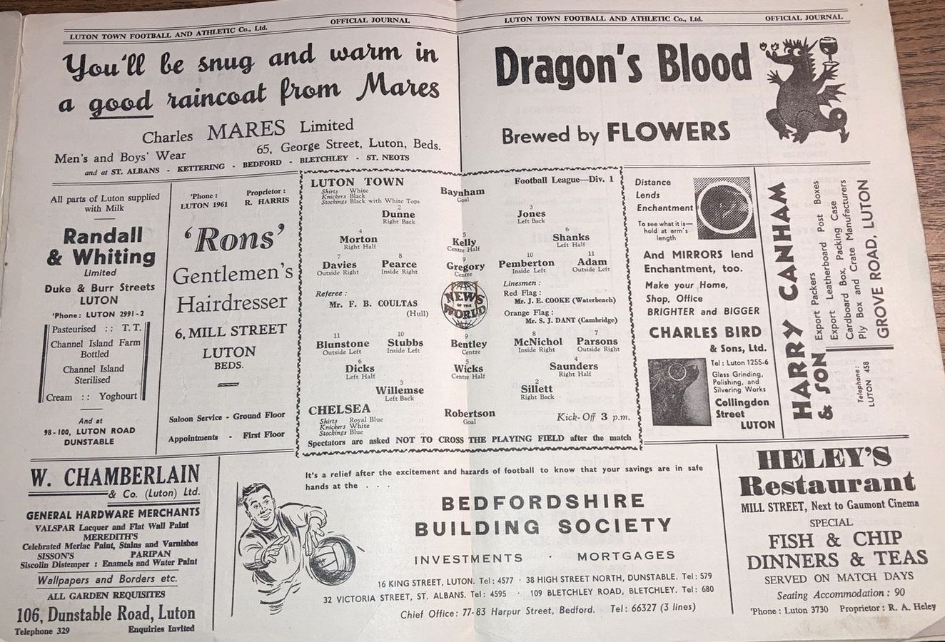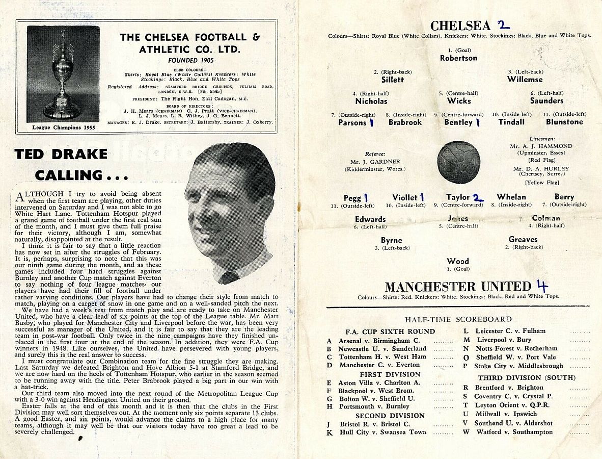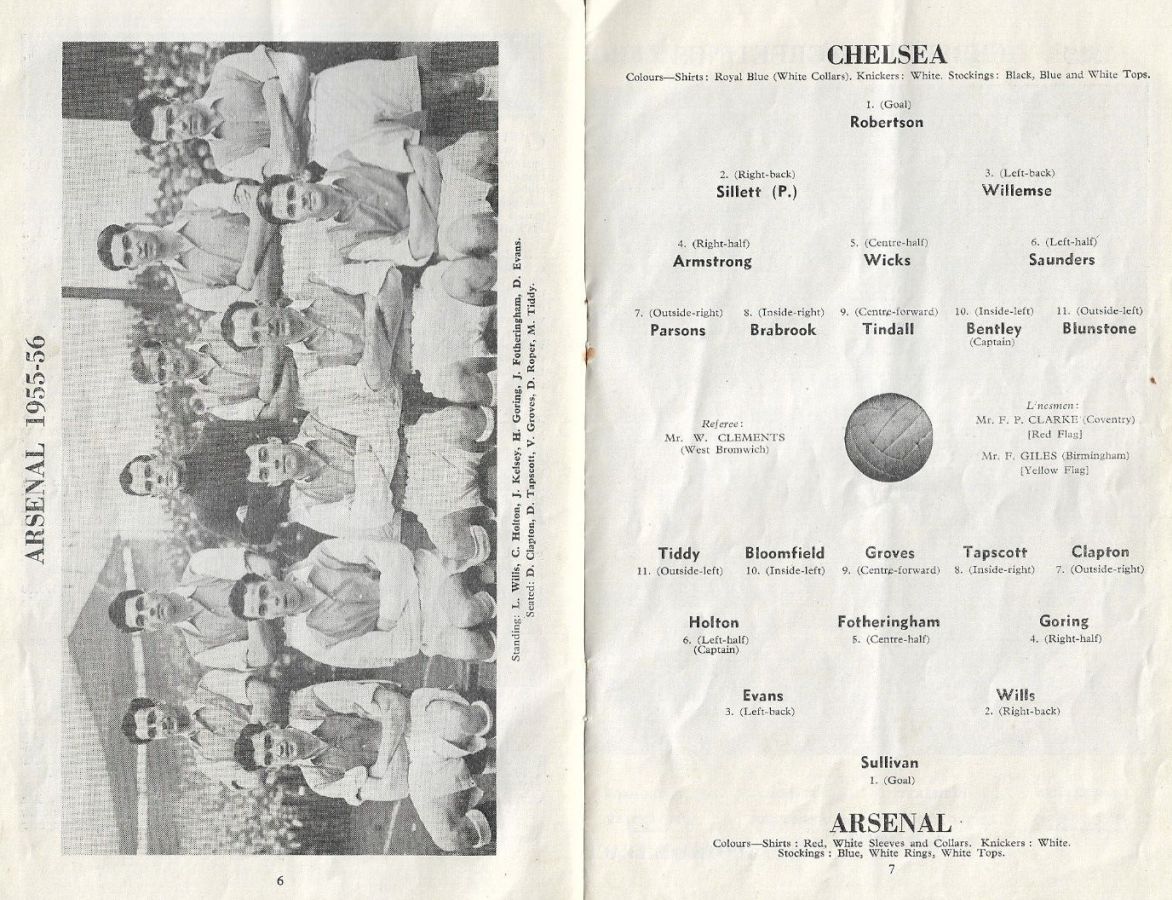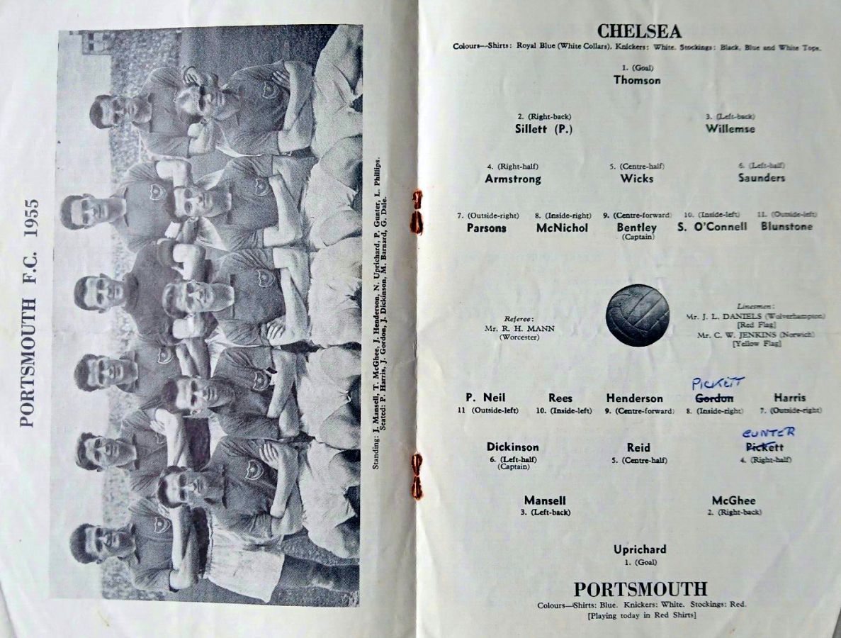 1 Bill Robertson, 2 Richard Whittaker, 3 Peter Sillett, 4 John Mortimore, 5 Stan Wicks, 6 John Compton, 7 Jim Lewis, 8 Peter Brabrook, 9 Roy Bentley, 10 Les Stubbs, 11 Frank Blunstone |