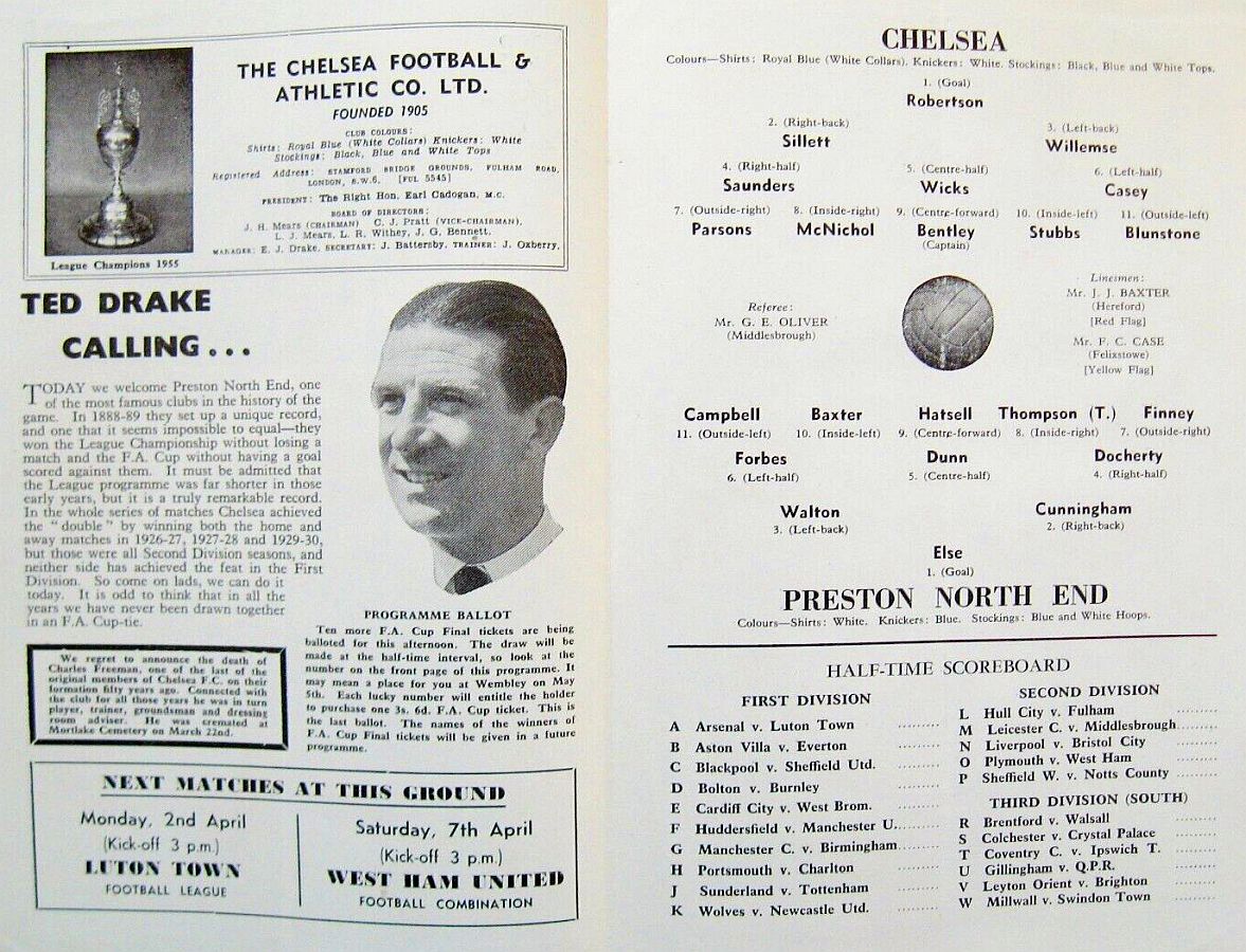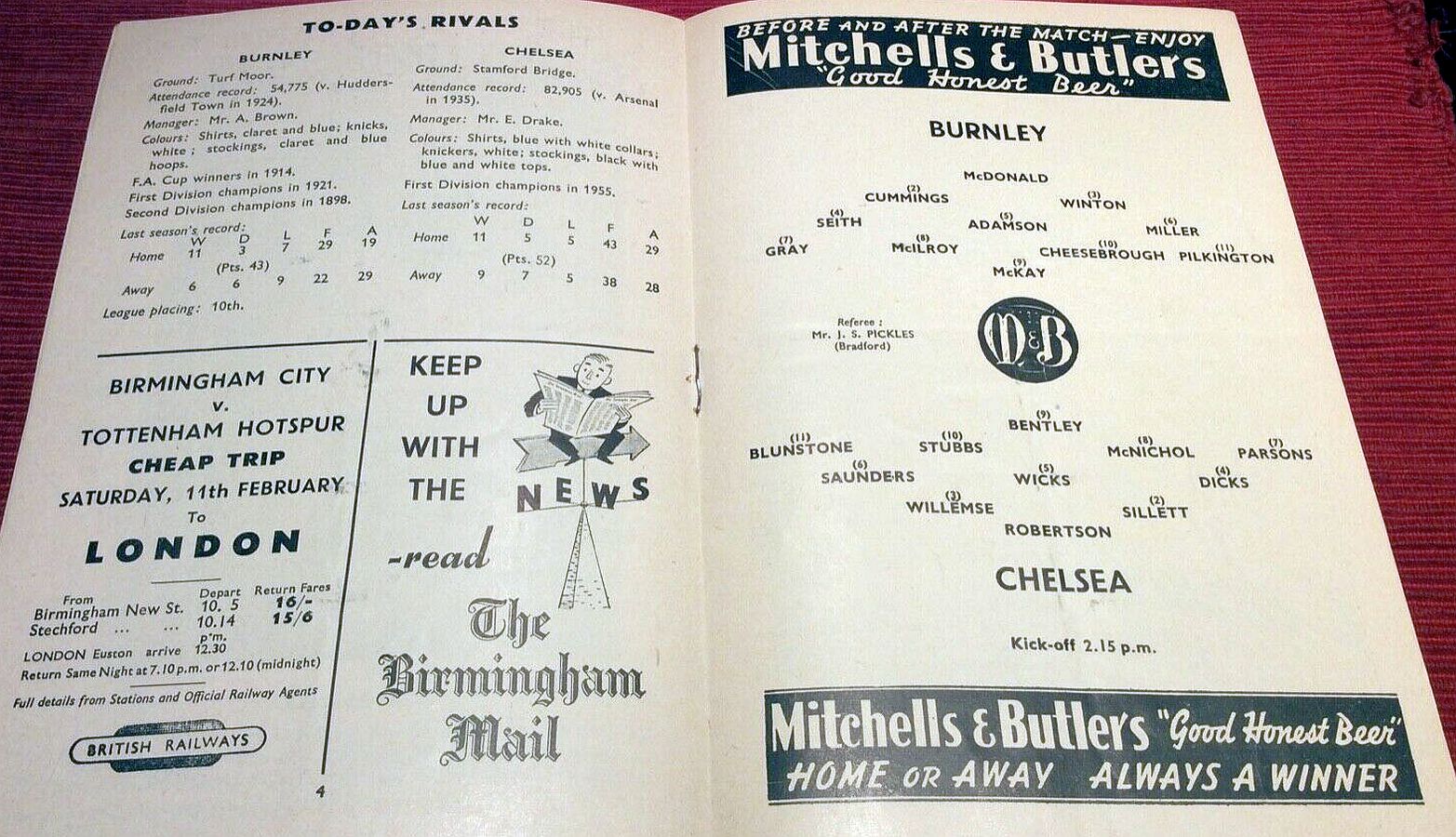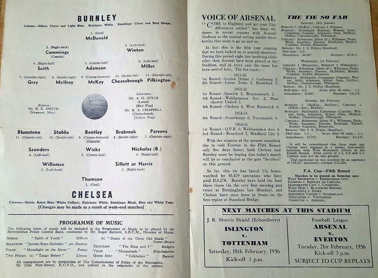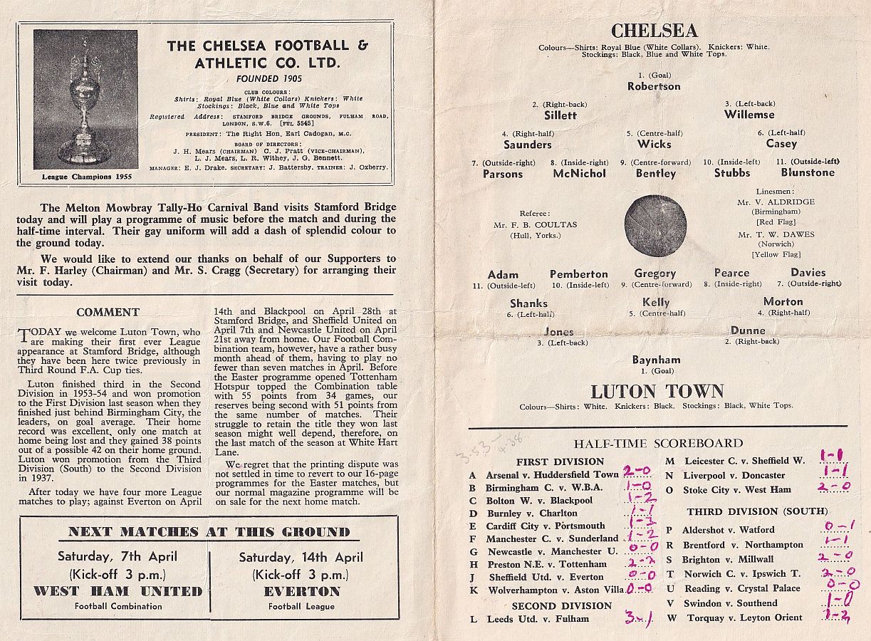 1 Bill Robertson, 2 Richard Whittaker, 3 Peter Sillett, 4 John Mortimore, 5 Stan Wicks, 6 John Compton, 7 Jim Lewis, 8 Peter Brabrook, 9 Roy Bentley, 10 Les Stubbs, 11 Frank Blunstone |