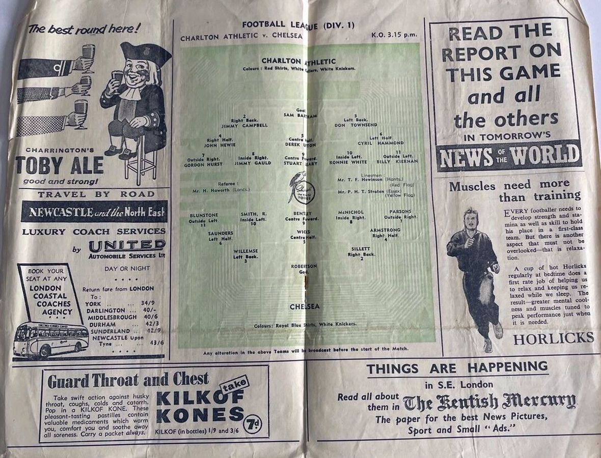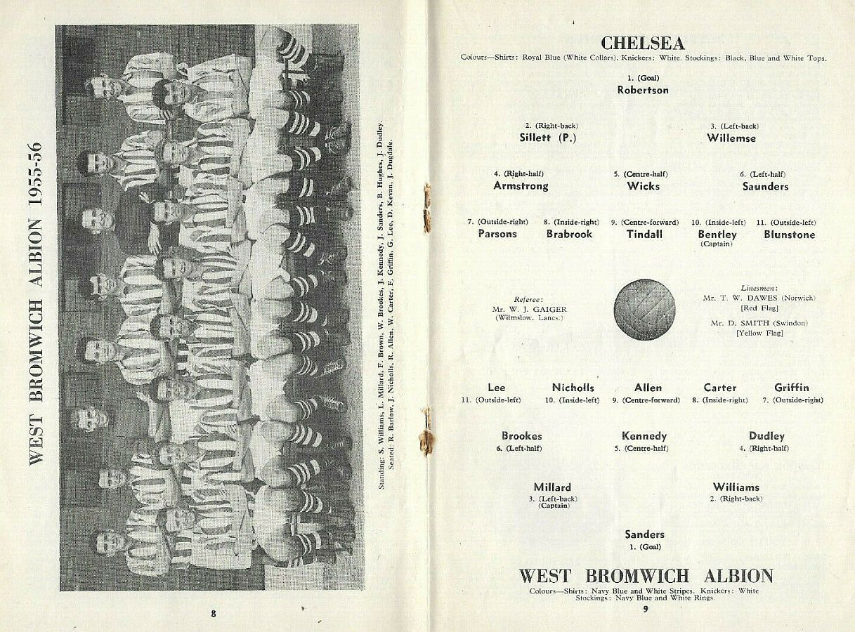 1 Bill Robertson, 2 Peter Sillett, 3 Stan Willemse, 4 Brian Nicholas, 5 Stan Wicks, 6 Derek Saunders, 7 Eric Parsons, 8 Peter Brabrook, 9 Roy Bentley, 10 Ron Tindall, 11 Frank Blunstone |