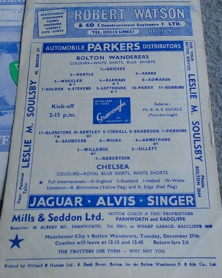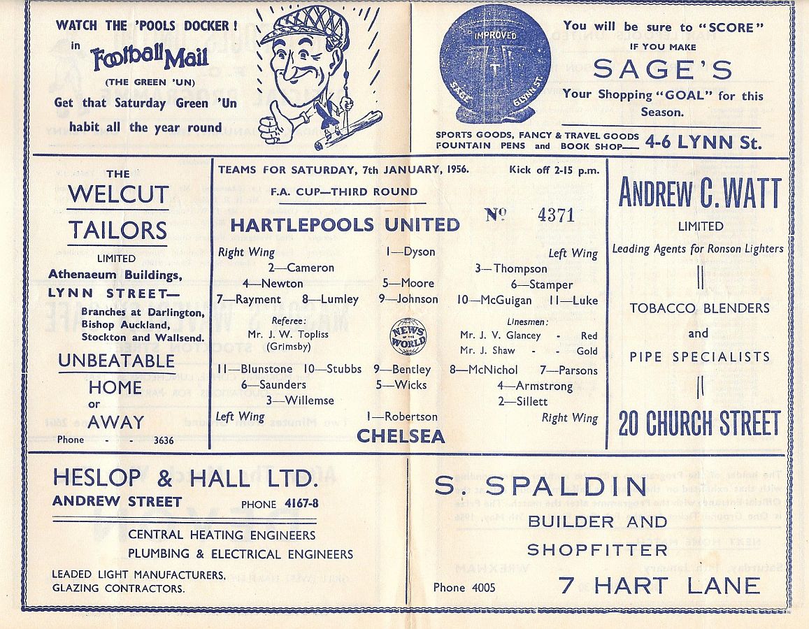 Willie Fraser, Jack Stelling, Arthur Hudgell, Stan Anderson, Ray Daniel, George Aitken, Billy Bingham, Charlie Fleming, Ted Purdon, Ken Chisholm, Len Shackleton |