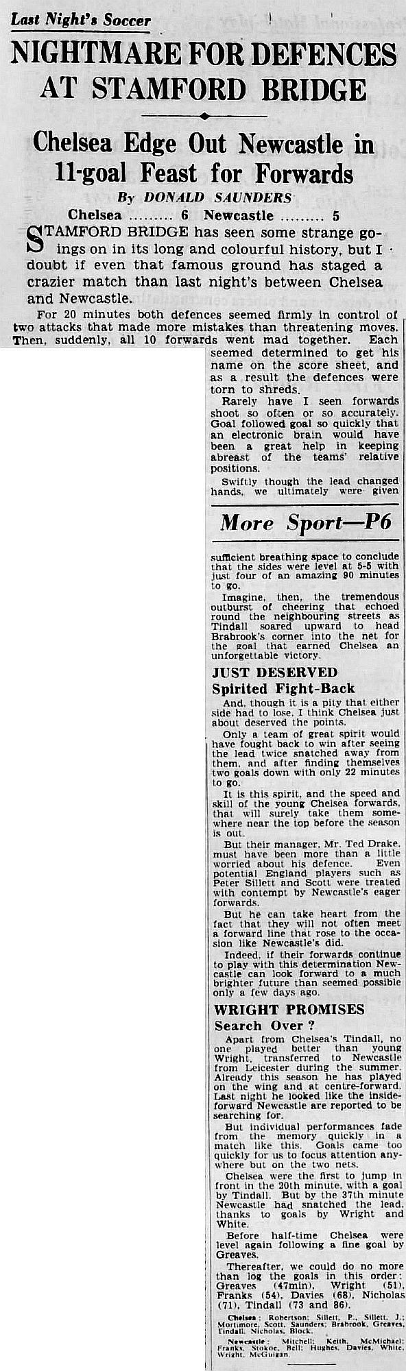 Chelsea (2) 6 Newcastle United (2) 5