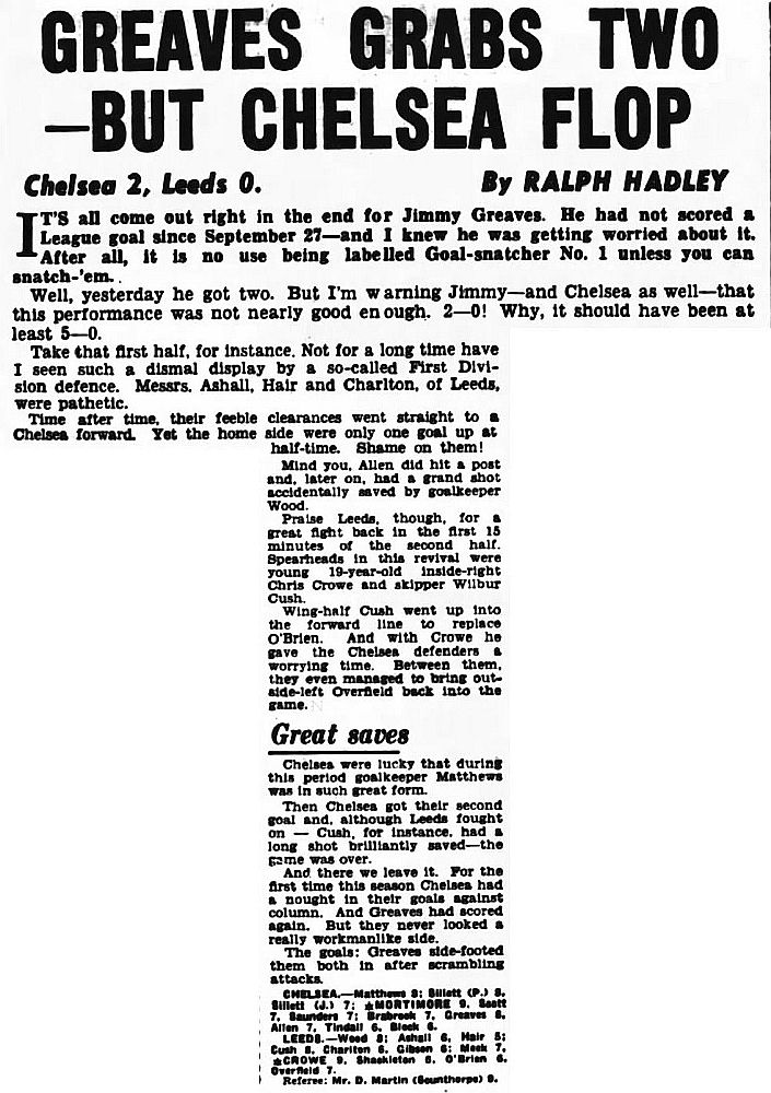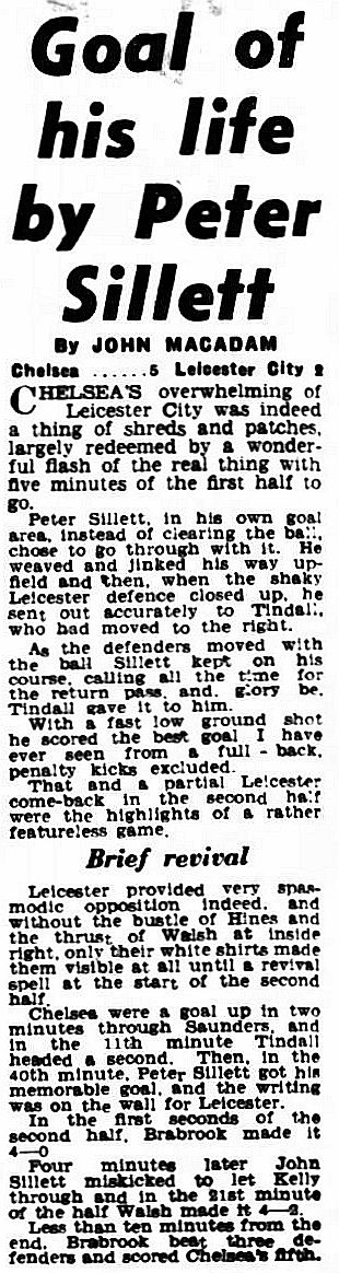 Greaves 38, Peter Sillett 58 |