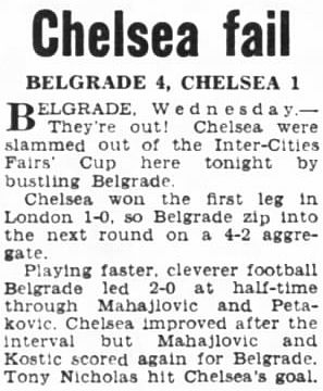 Ville de Belgrade (2) 4 Chelsea (0) 1