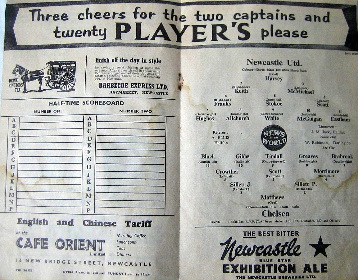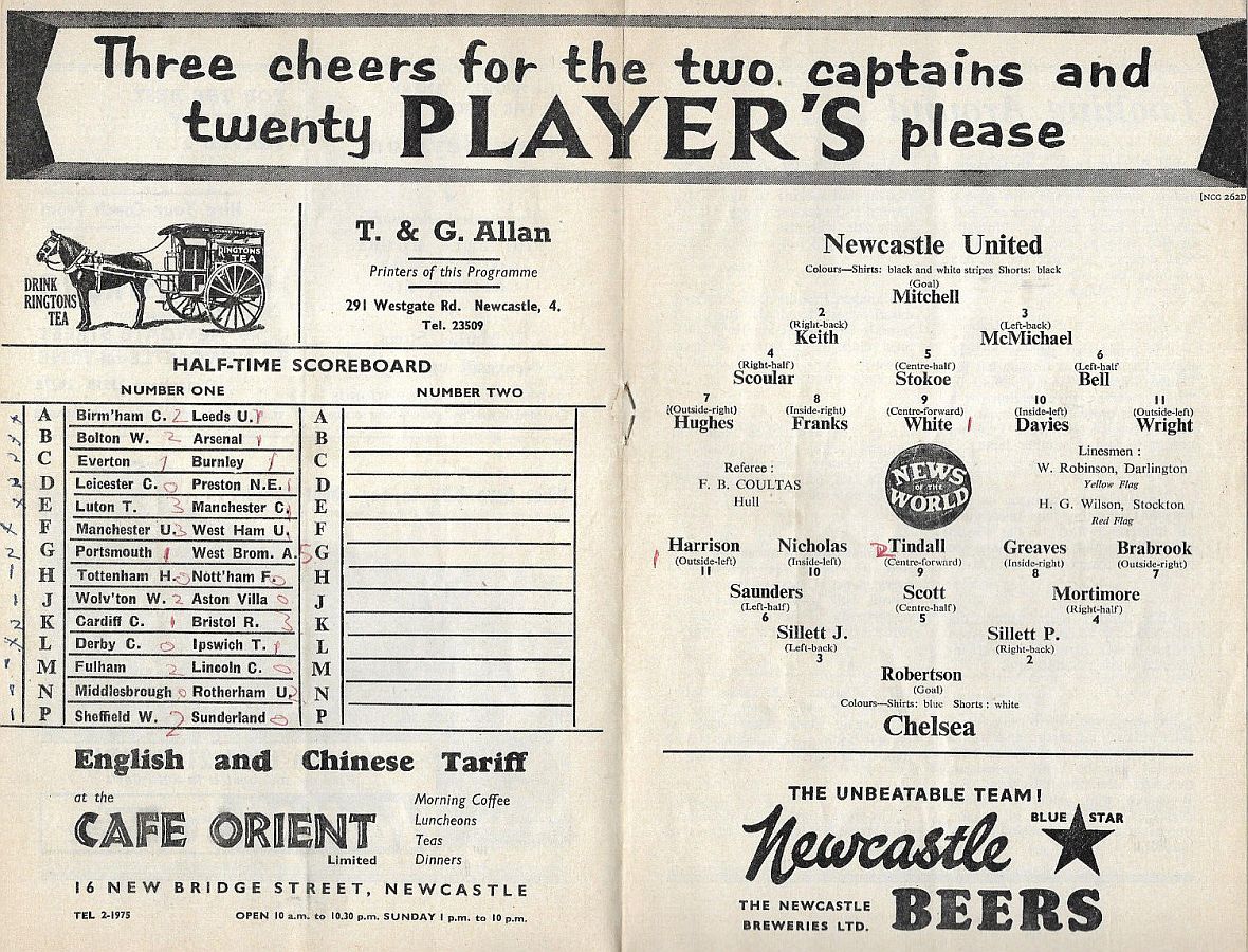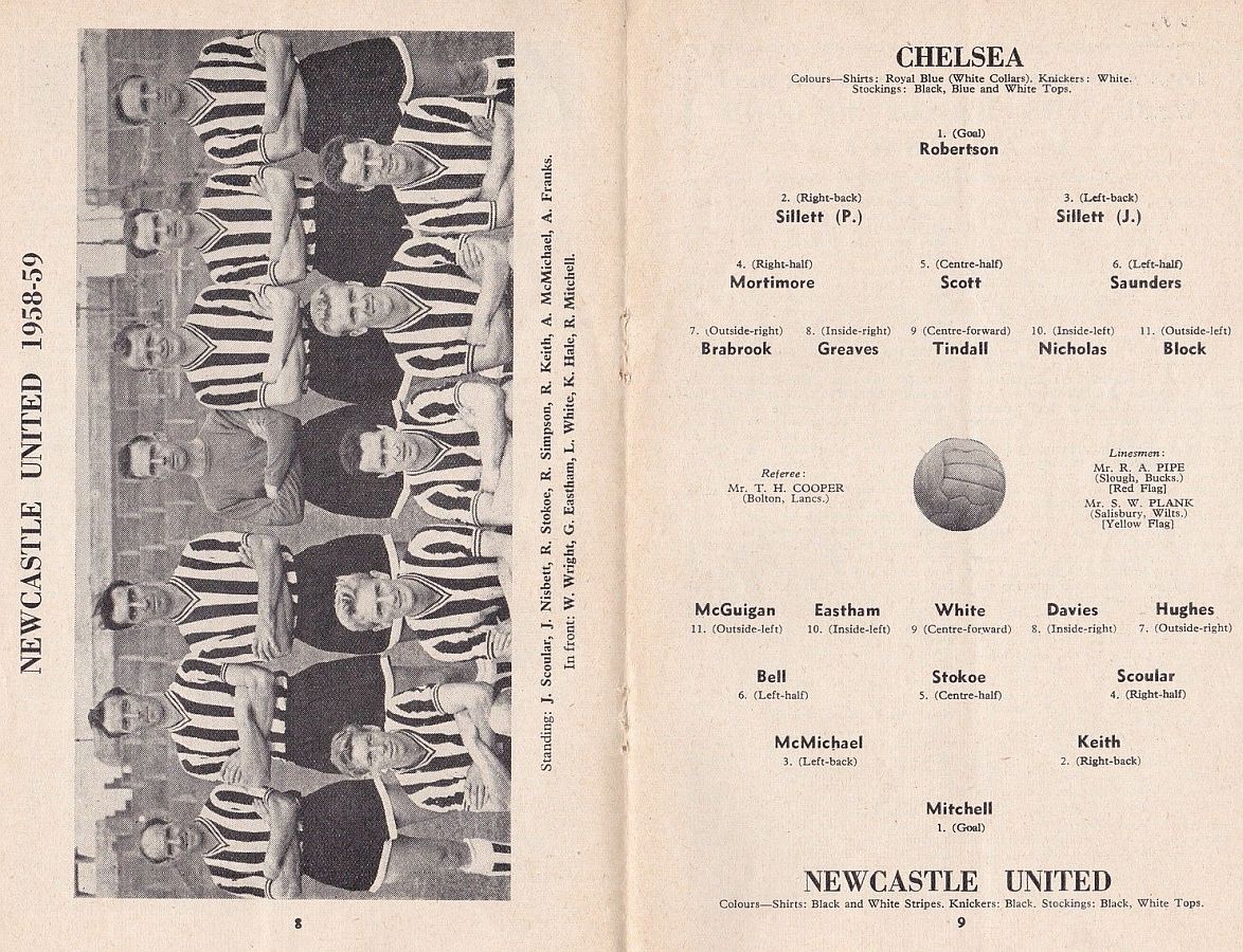 Stewart Mitchell, Dick Keith, Alf McMichael, Jimmy Scoular, Bob Stokoe, Jackie Bell, Gordon Hughes, Albert Franks, Len White, Reg Davies, Billy Wright |